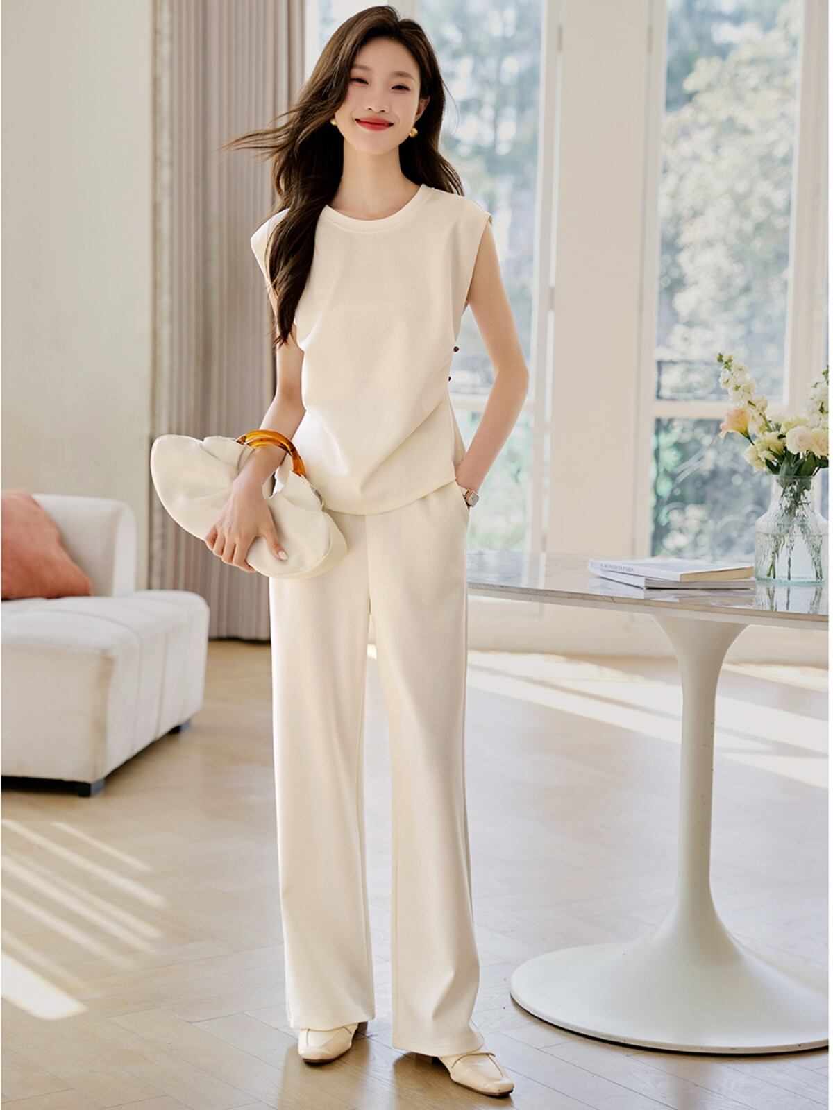 絶対欲しい 上品 カジュアル シンプル エレガント トップス+パンツ <ins-8340>