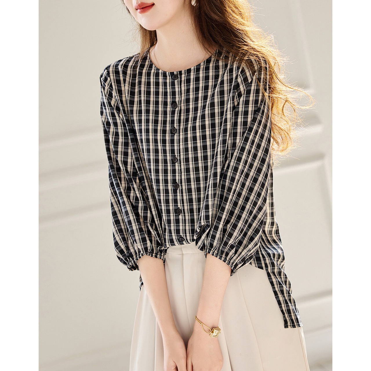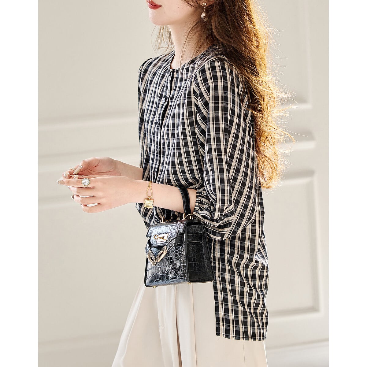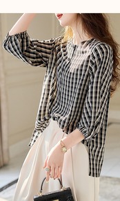 定番シンプル ゆったり感アップ エレガント チェック柄 Tシャツ カットソー<ins-8368>