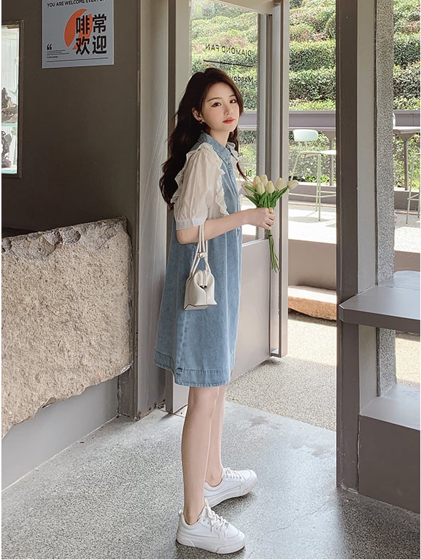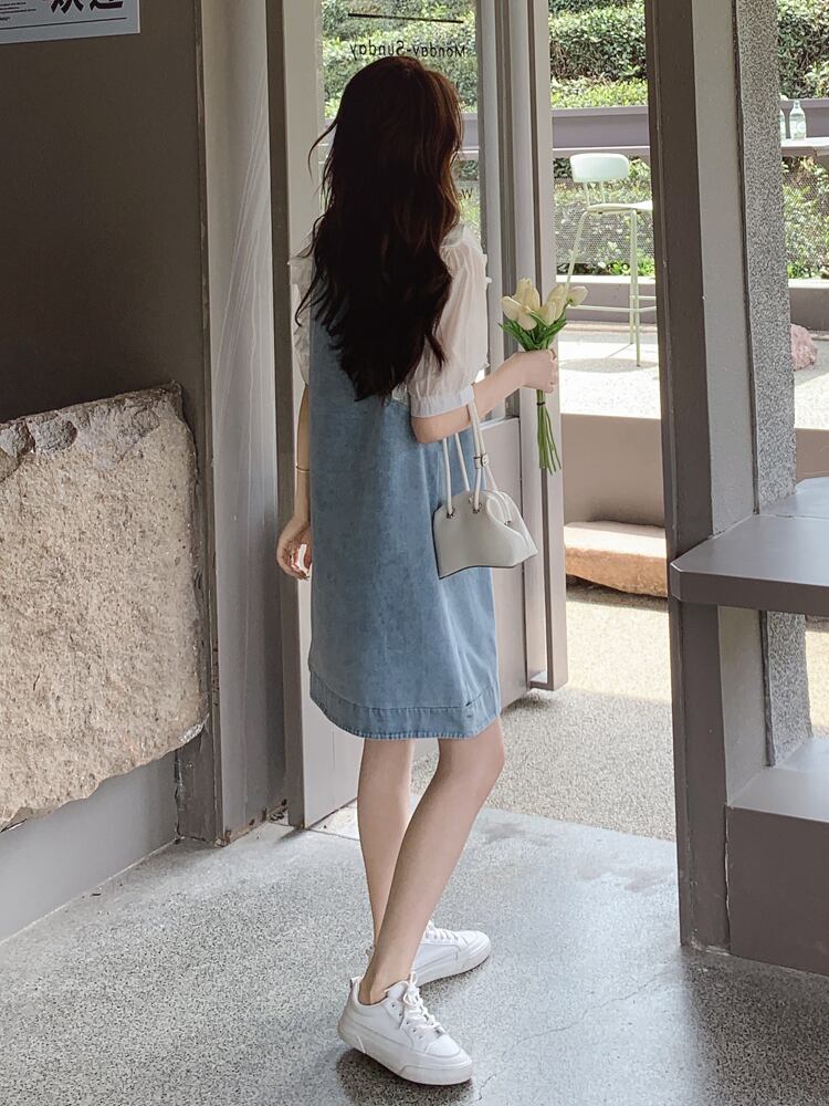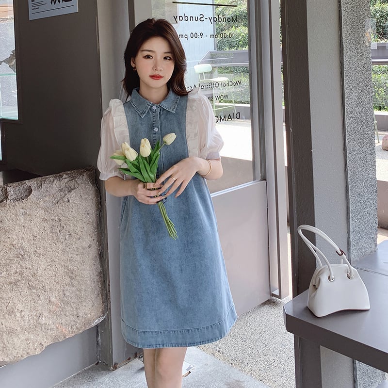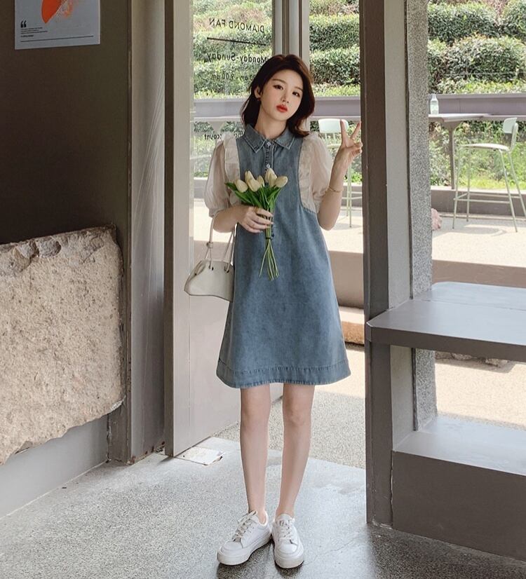 話題沸騰中 スウィート 切り替え デニム 半袖ワンピース<ins-8387>