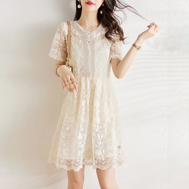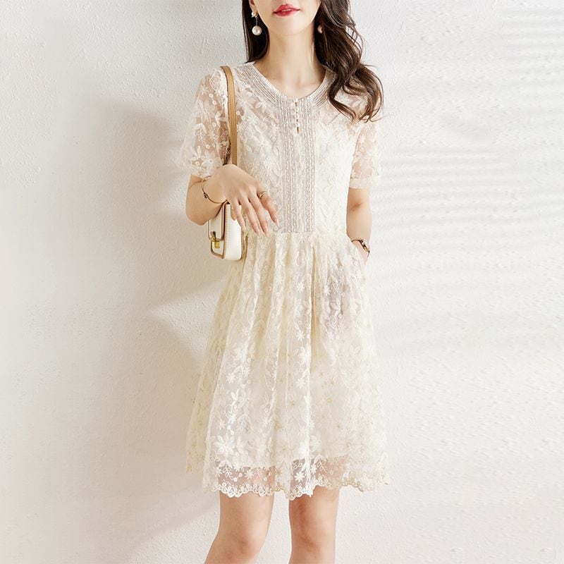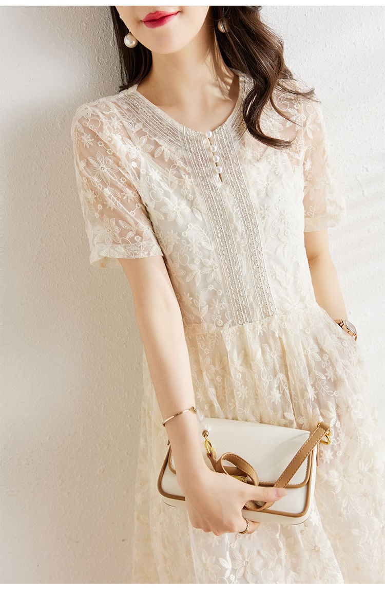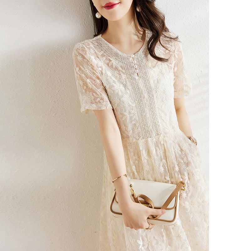 美人度アップ エレガント知的 レース Aライン ワンピース<ins-8399>
