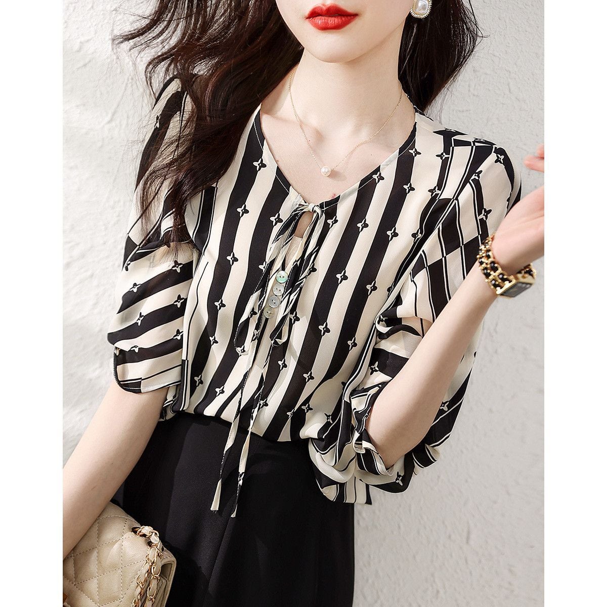 超人気 話題沸騰中 ファッション 知的 ストライプ柄 シャツ<ins-8408>