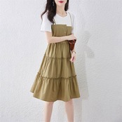 売り切れ必至 ファッション レイヤード風 切り替え 半袖ワンピース<ins-8411>