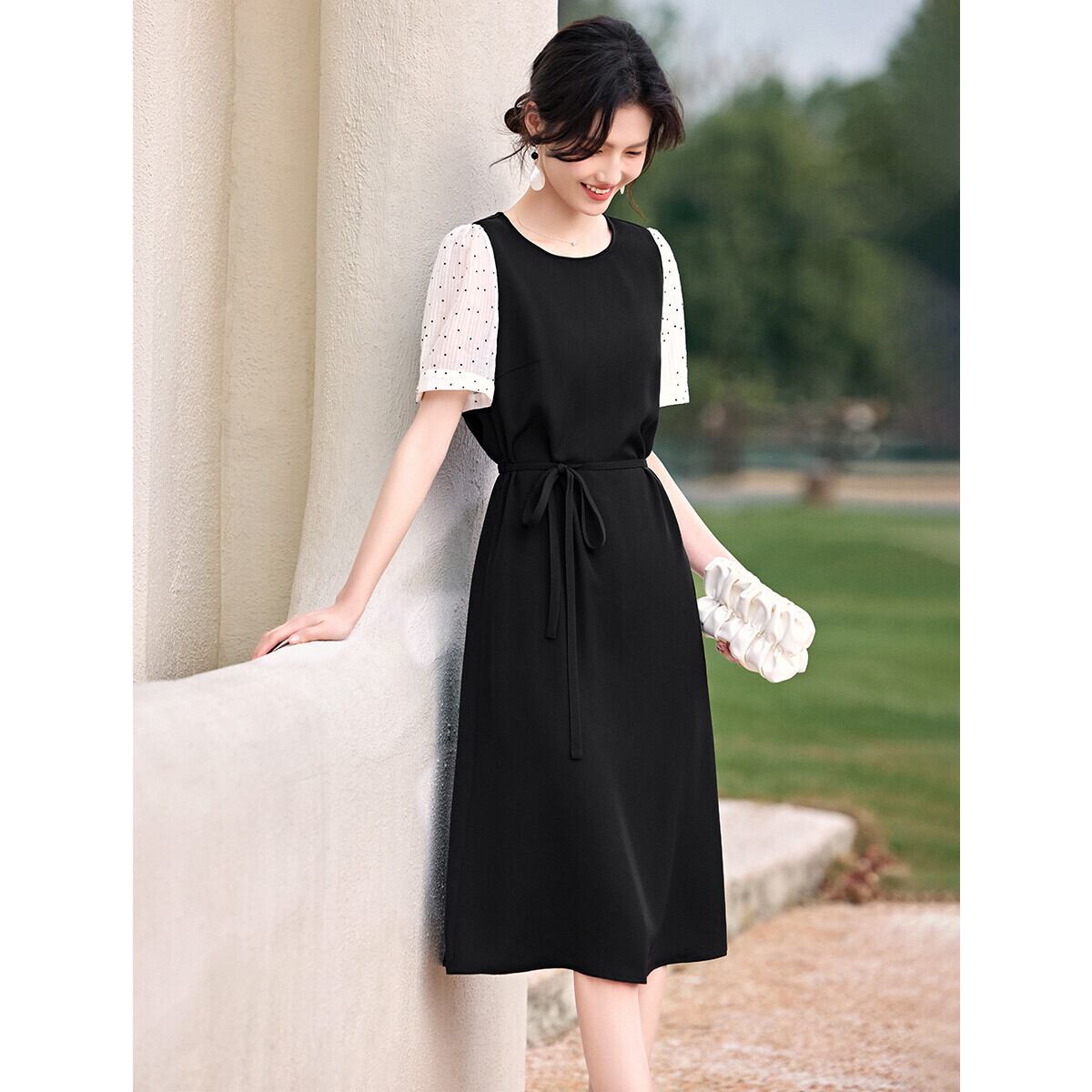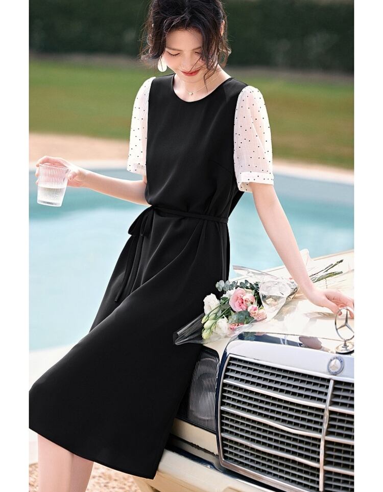 今季マストバイ 上品 エレガント 切り替え 半袖ワンピース<ins-8438>