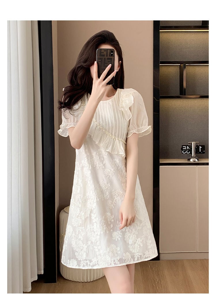 期間限定 スウィートエレガント刺繍 レース フリル ワンピース<ins-8444>