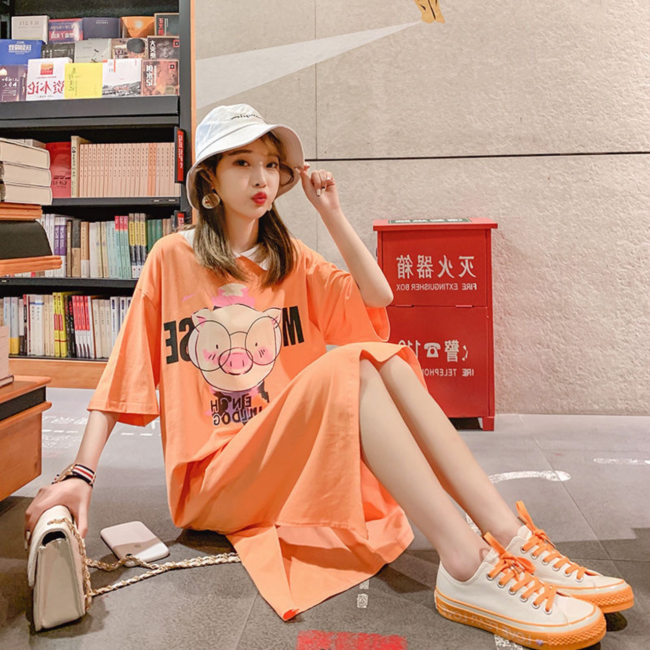 美人度アップ カジュアル プリント 両面着る ワンピース<ins-8453>