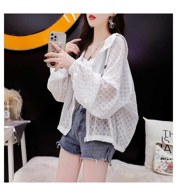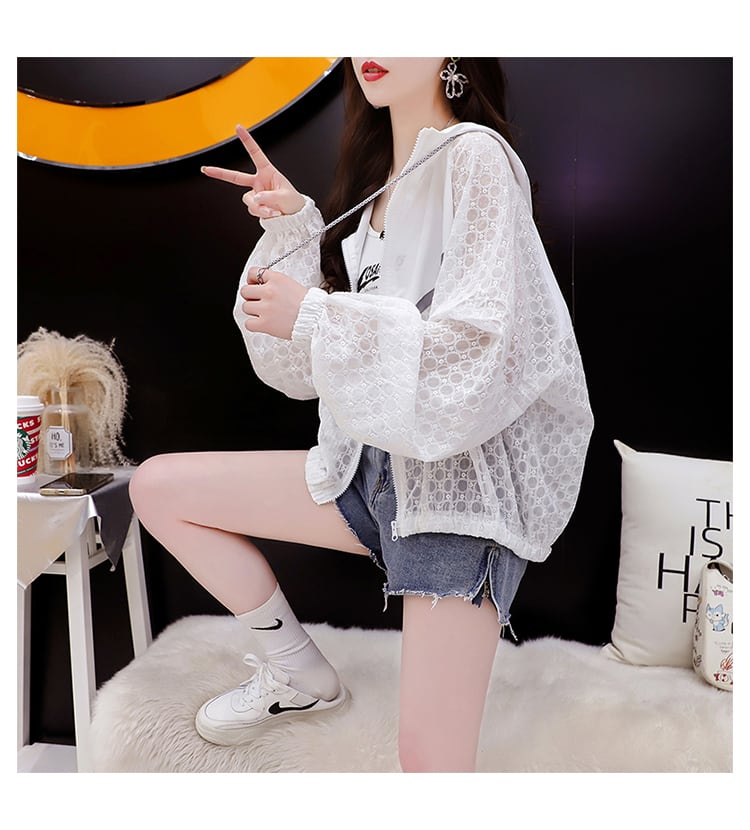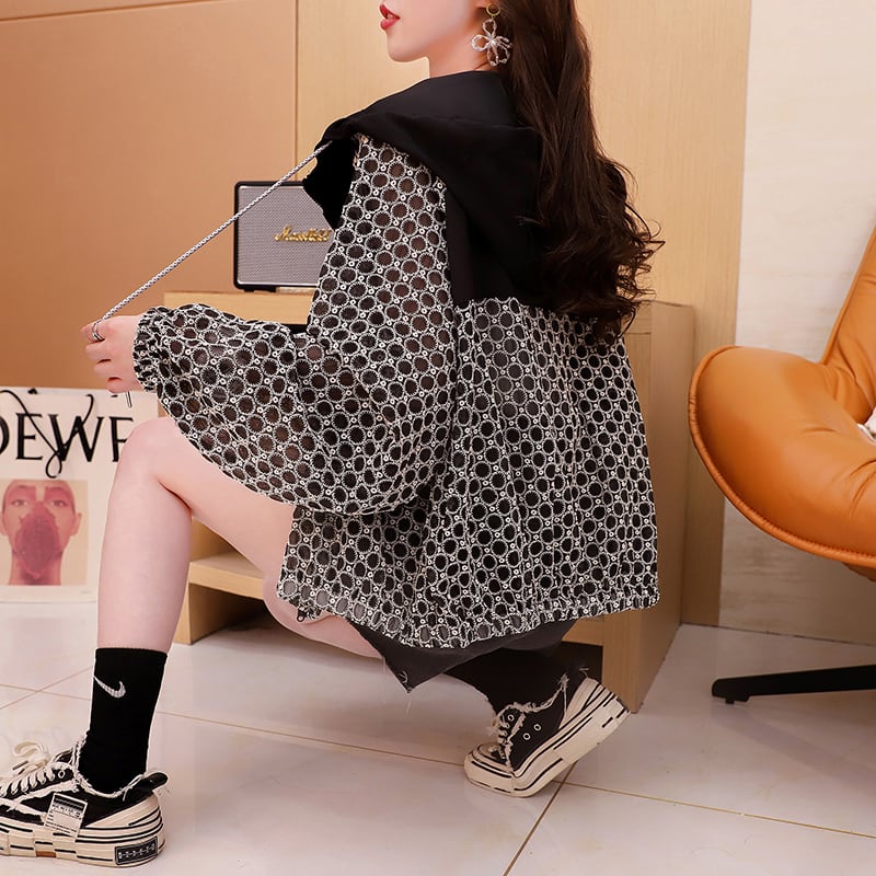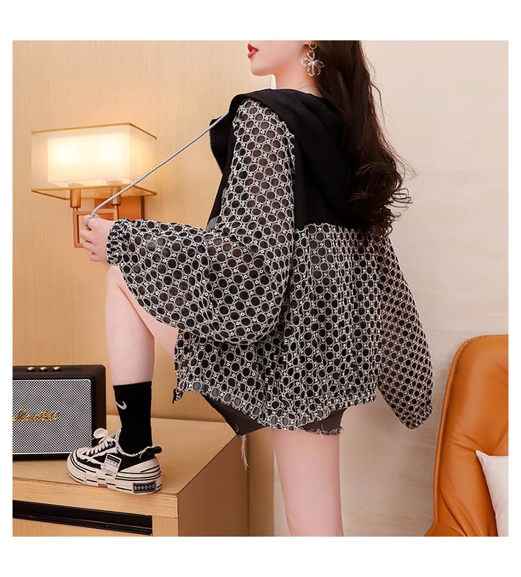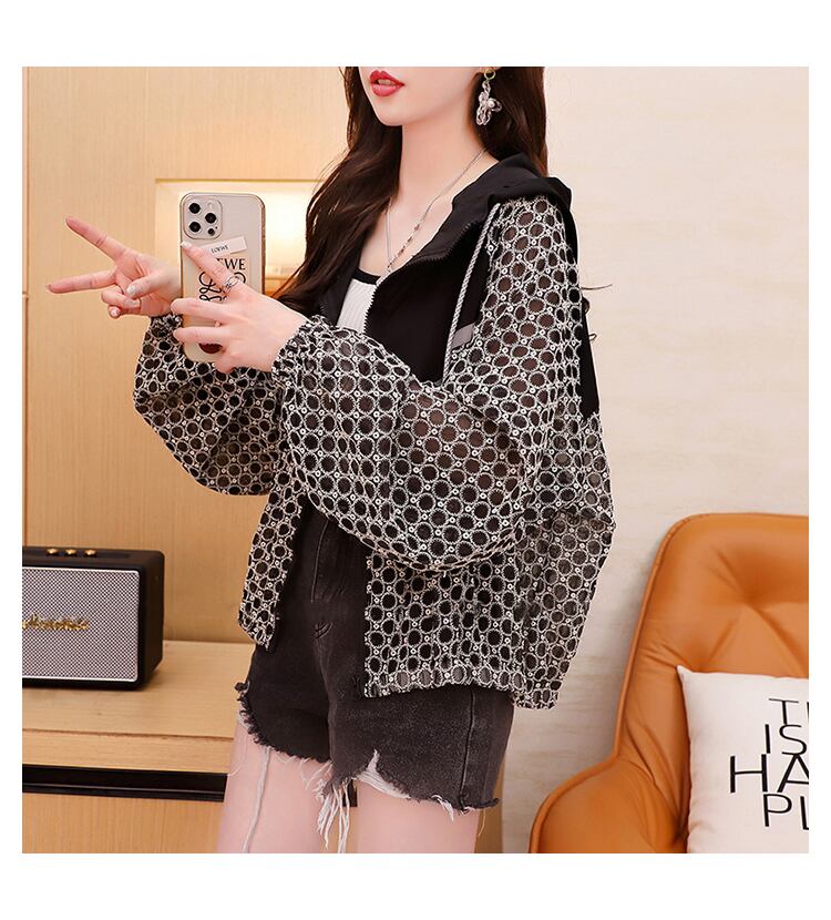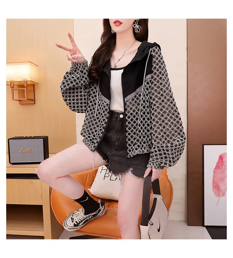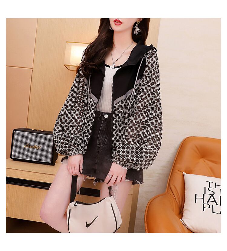 超人気 長袖 切り替え 薄手 日焼け止め パーカー<ins-8469>