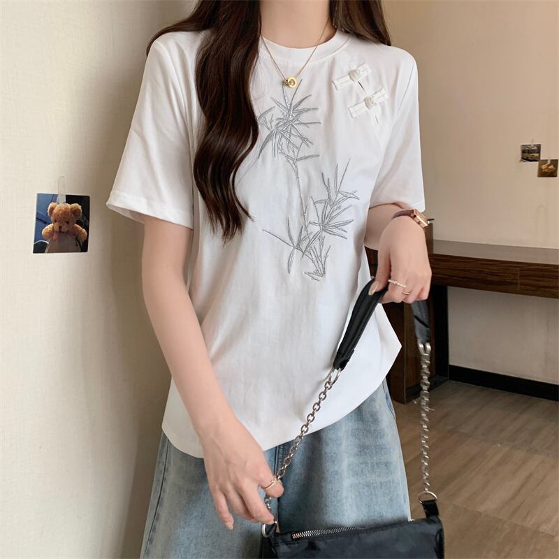 おすすめ カジュアル 海外トレンド モーダル 刺繍 半袖Tシャツ<ins-8476>