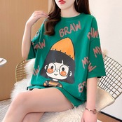 新商品 好感度満載 ラウンドネック プリント Tシャツ カットソー<ins-8477>