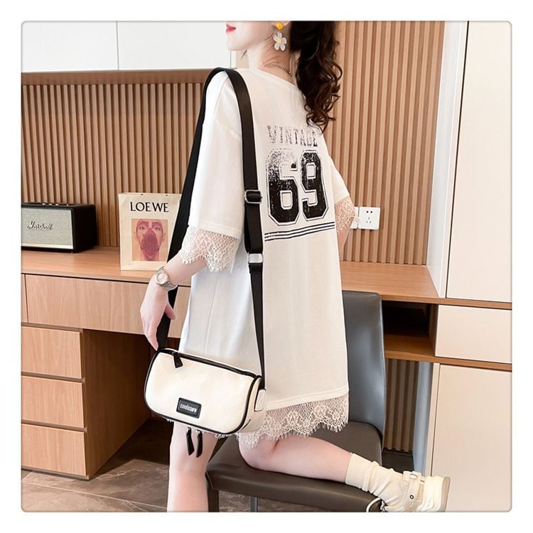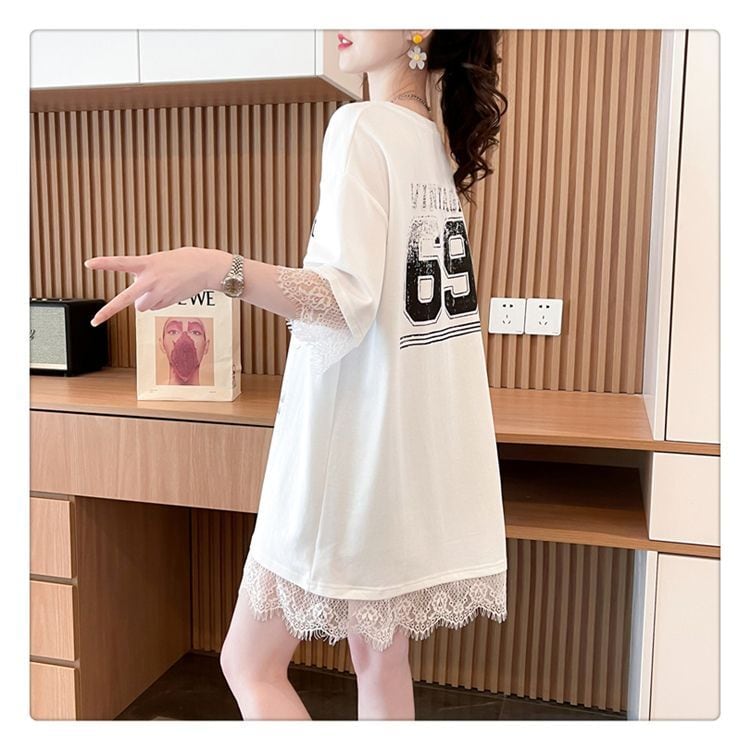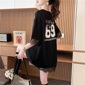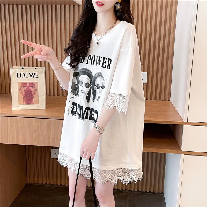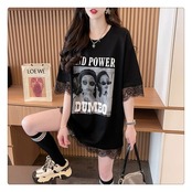 売り切れ必至 ファッション レース 切り替え ゆったり 半袖Tシャツ<ins-8480>