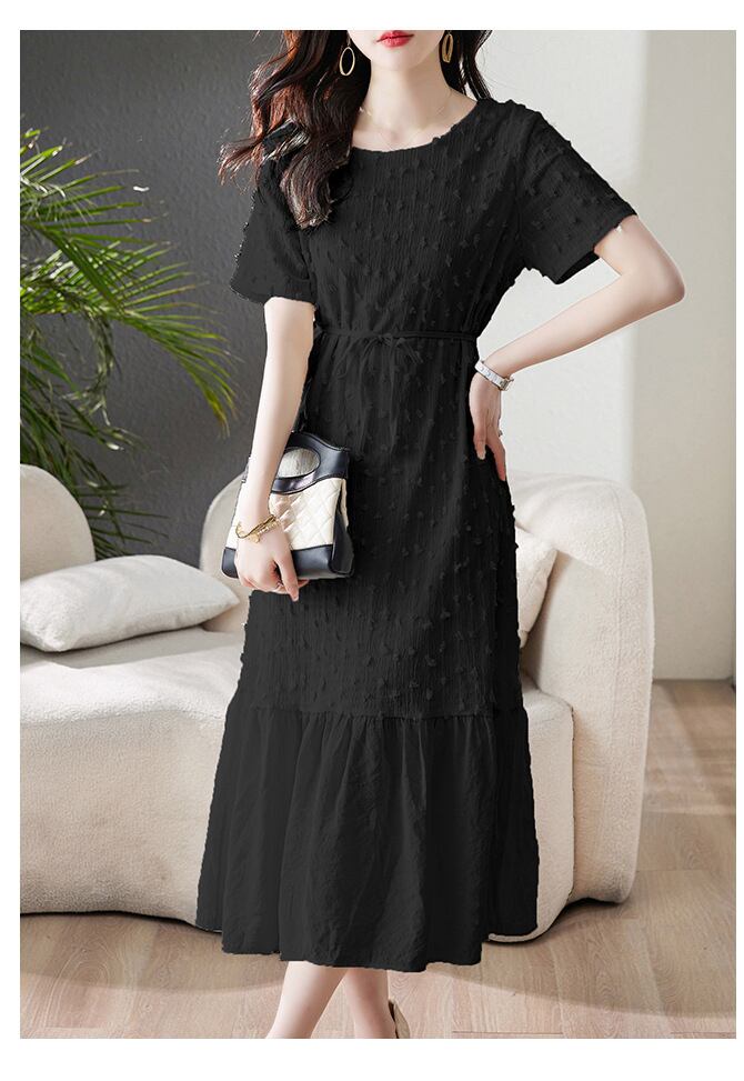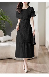 絶対欲しい 美人度アップ エレガント シフォン フリル 半袖ワンピース<ins-8481>