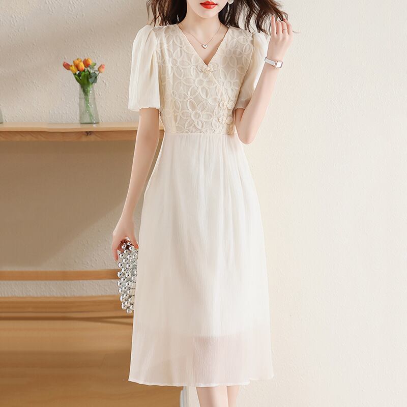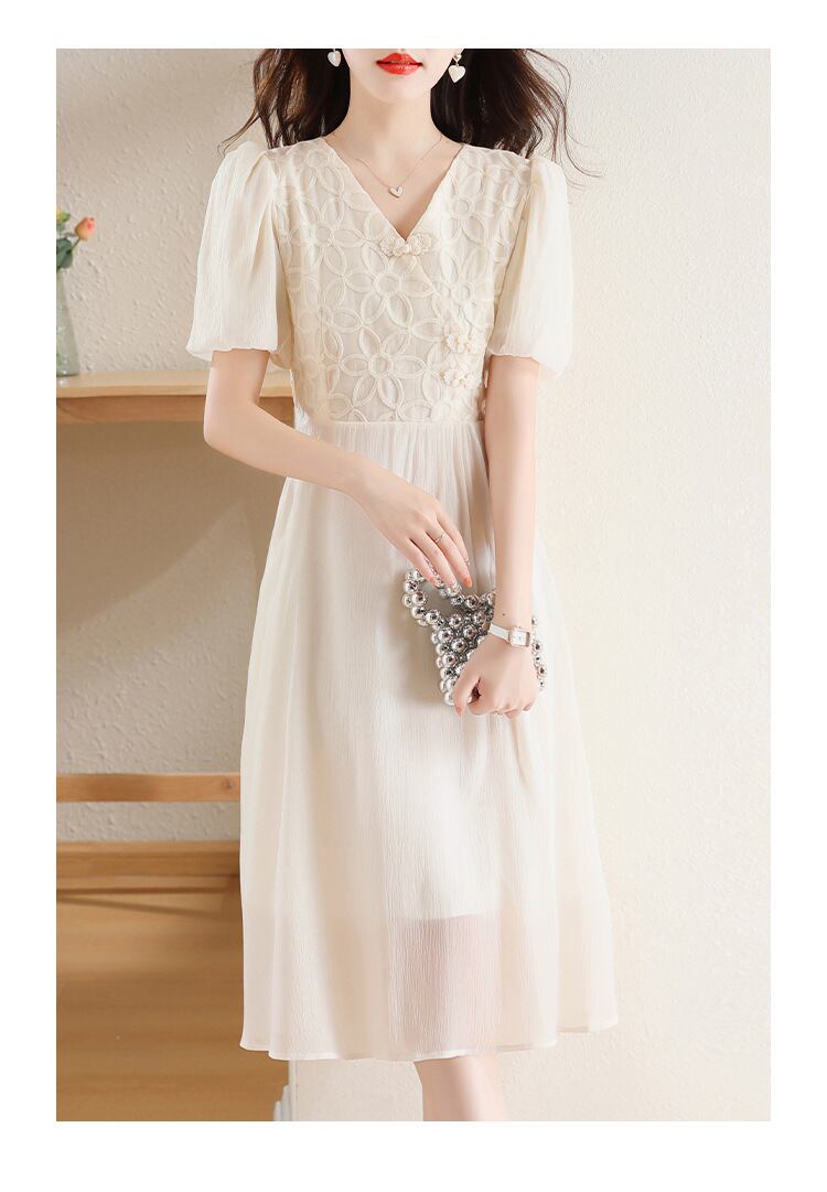 新商品 美人度アップ エレガント 海外トレンド 刺繍 半袖ワンピース<ins-8497>