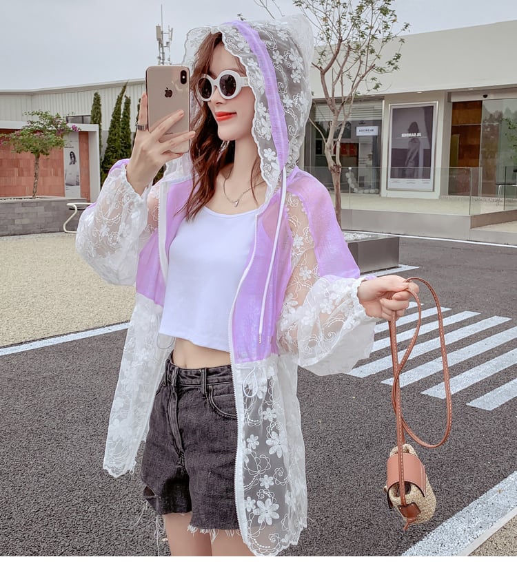 【人気急上昇中!】半額セール 美人度アップ キュート 透け感 日焼け対策 レース 刺繍 全3色 パーカー コート<ins-8510>