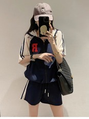 着回し力抜群 カジュアル 切り替え ファスナー ブラウスⅹパンツセット<ins-8515>