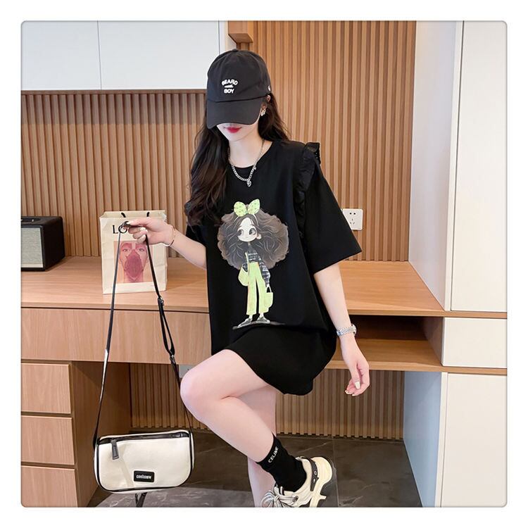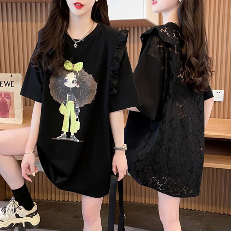 【半額!期間限定!!】着回し力抜群 プリント 切り替え レース 切り替え ゆったり半袖 Tシャツ <ins-8527>