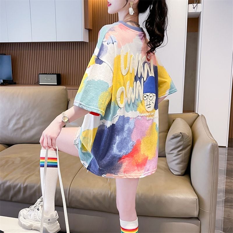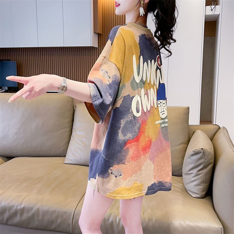 売り切れ必至 ファッション 絞り染め プリント 2色選択 半袖Tシャツ<ins-8573>