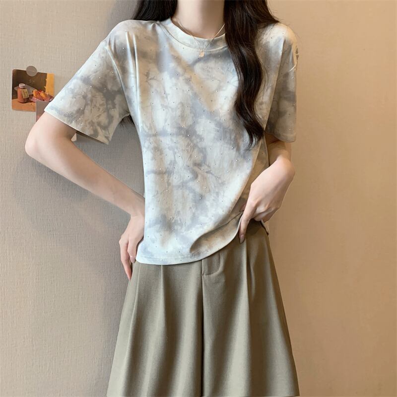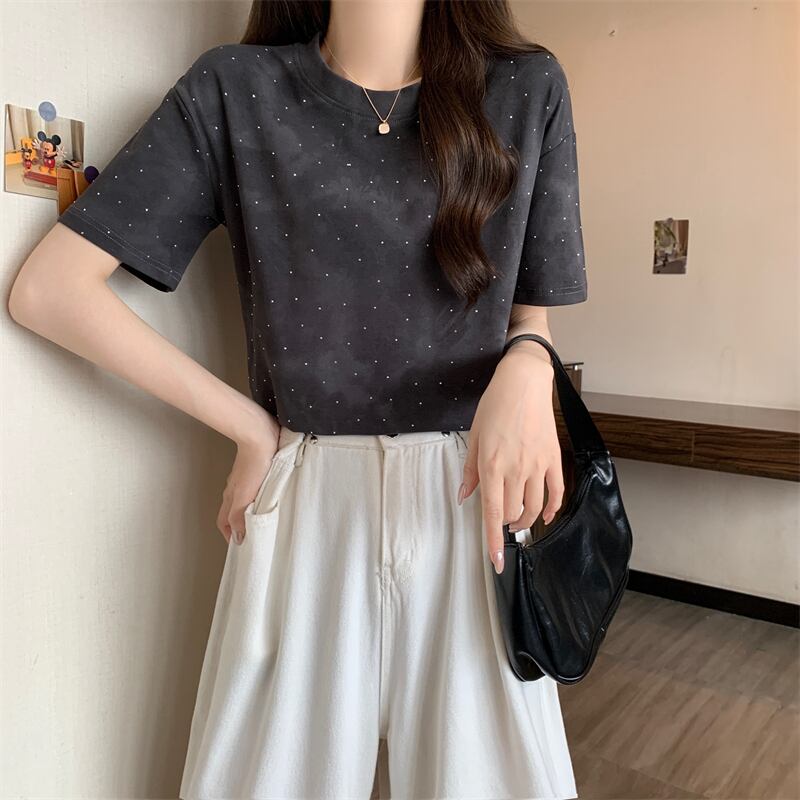 着回し力抜群 定番シンプル ホットダイヤモンド 全2色 半袖Tシャツ カットソー <ins-8591>