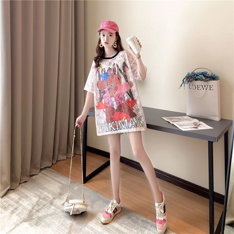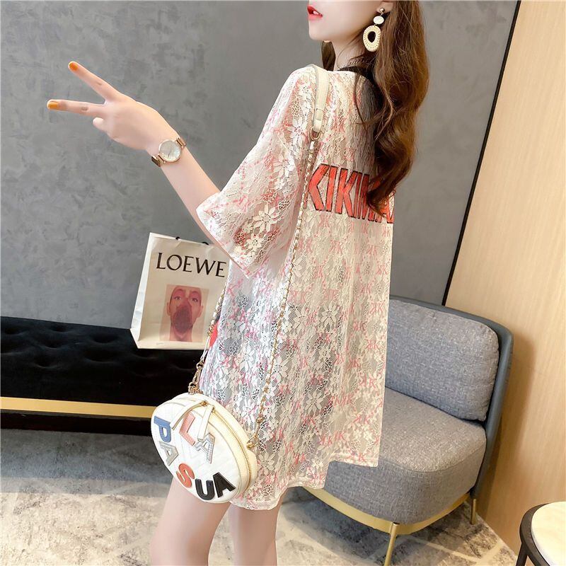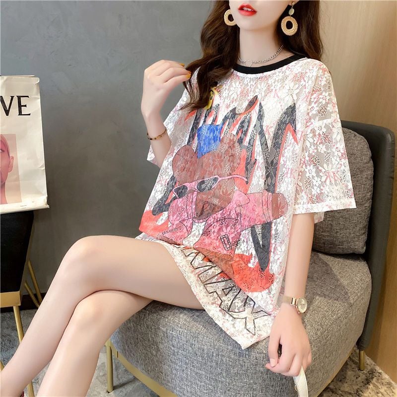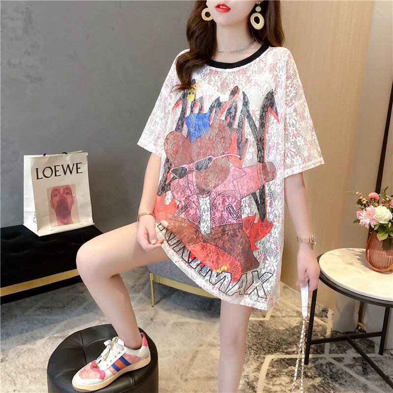 売り切れ必至 ファッション レース 透かし彫り プリント 半袖Tシャツ カットソー <ins-8597>
