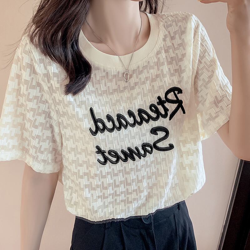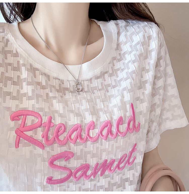 【半額!期間限定!!】大活躍 定番シンプル シフォン 刺繍 全3色 Tシャツ カットソー <ins-8601>