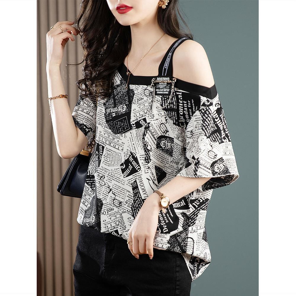 【半額!期間限定!!】絶対流行 個性派 特別デザイン シフォン プリント 半袖Tシャツ<ins-8610>
