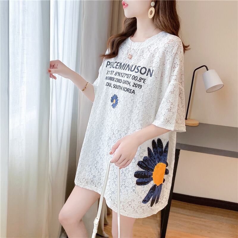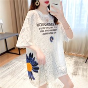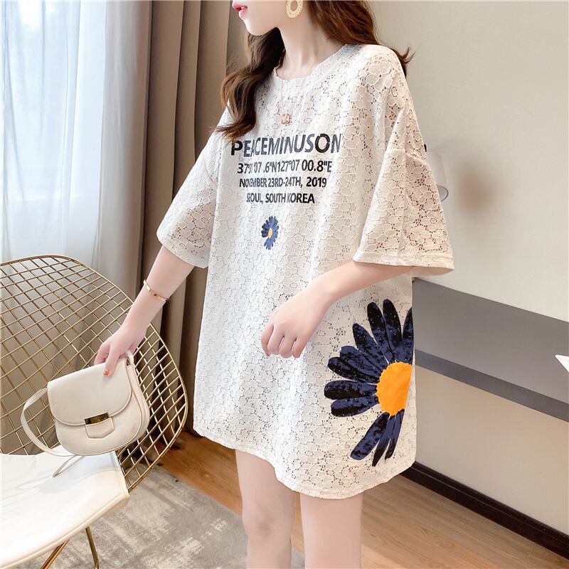 【半額!期間限定!!】美人度アップ 大好評 レース 透かし彫り プリント 半袖Tシャツ カットソー <ins-8624>