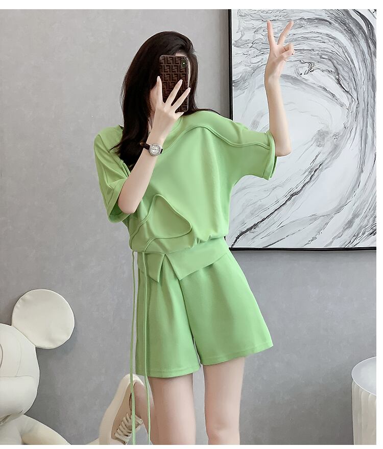 着心地良い カジュアル ラウンドネック 半袖Tシャツ ショートパンツ セットアップ <ins-8653>