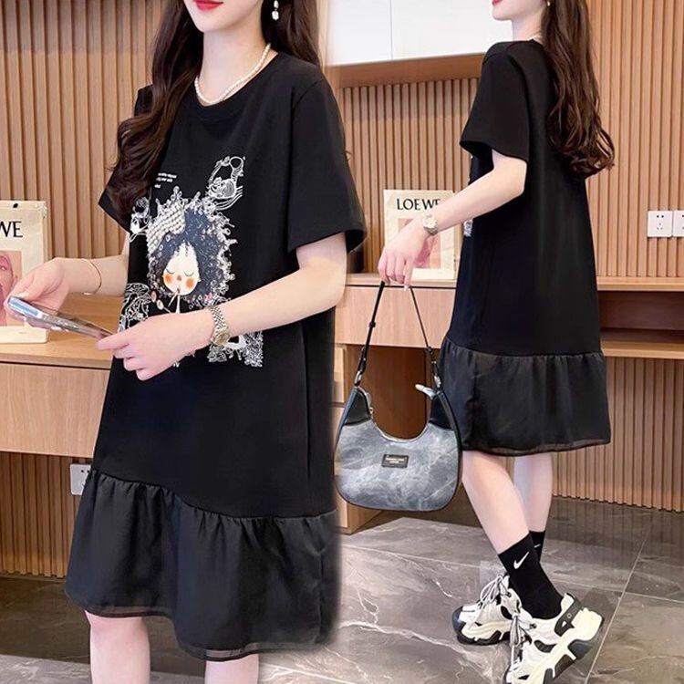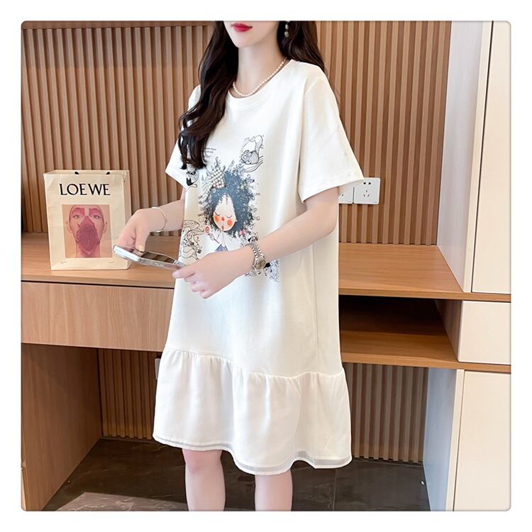 超人気 ファッション キュート スウィート プリント フリル ワンピース<ins-8669>