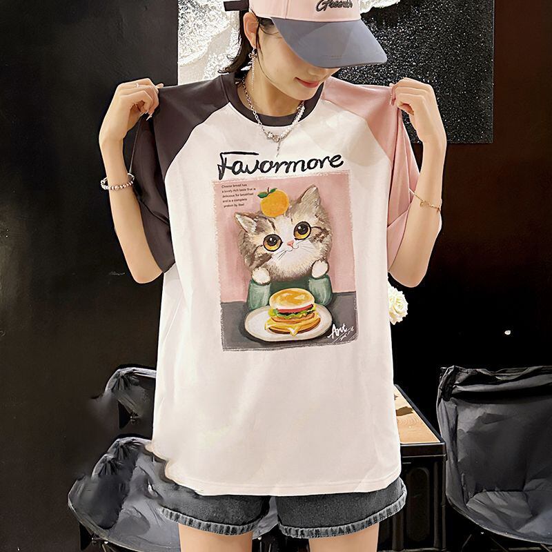 話題沸騰中 新作 プリント切り替え 全2色 半袖Tシャツ カットソー <ins-8682>