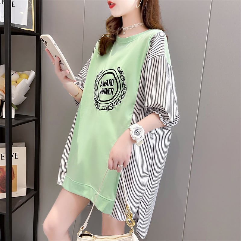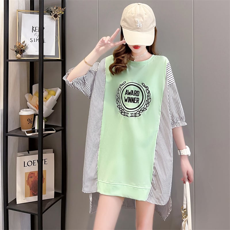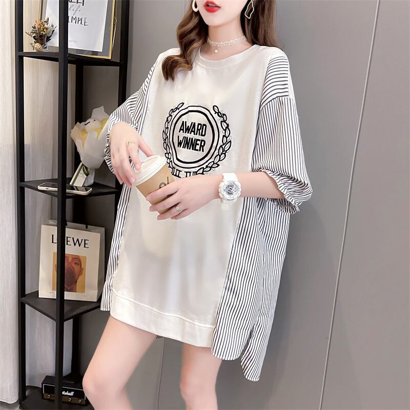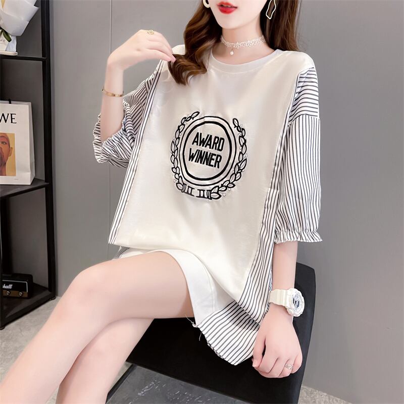期間限定 新作 ストライプ柄 切り替え プリント 全3色 半袖Tシャツ カットソー <ins-8685>