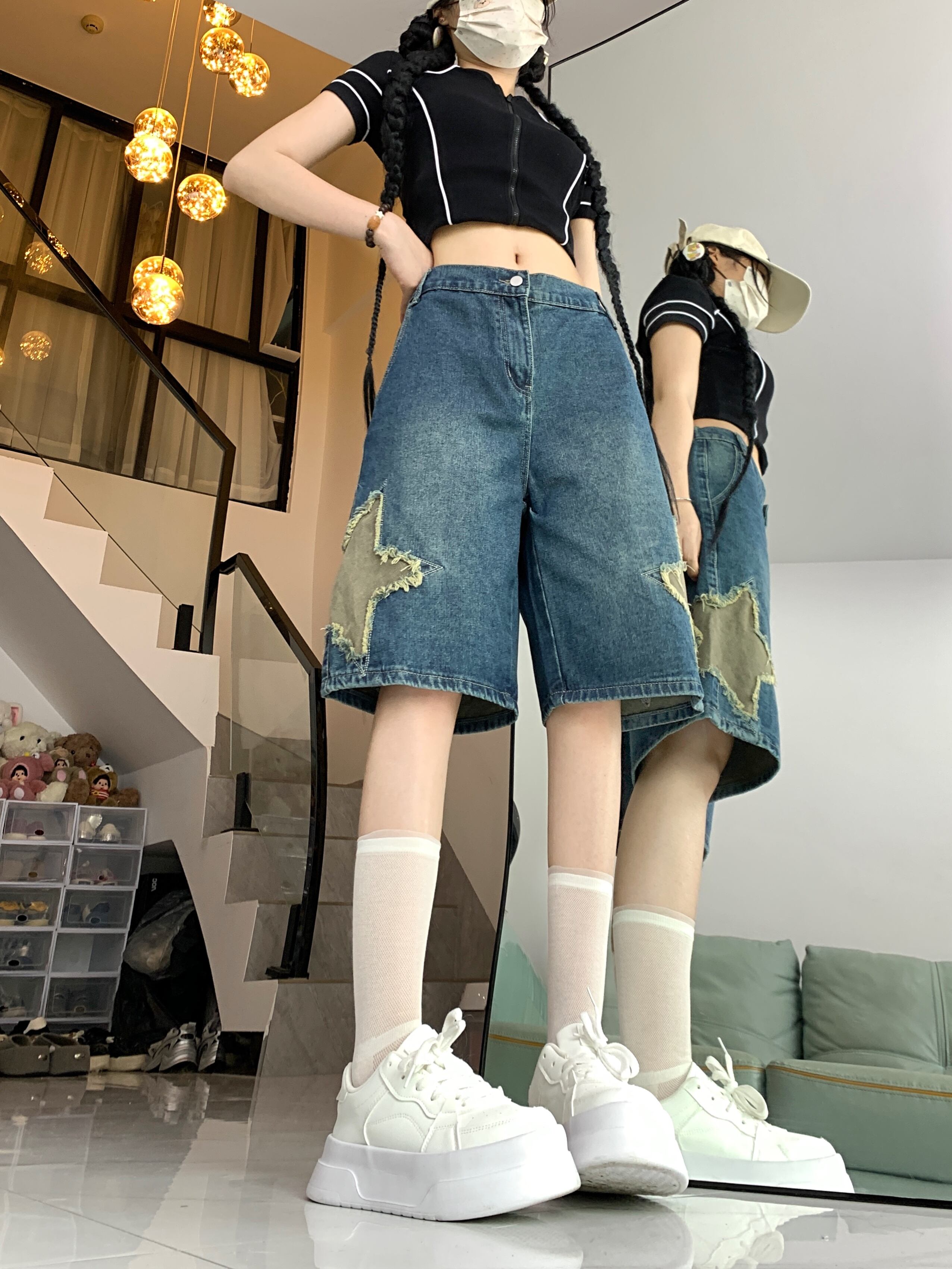 絶対流行 ゆったり感アップ個性派 デニム ハイウエスト パンツ ボトムス<ins-8657>