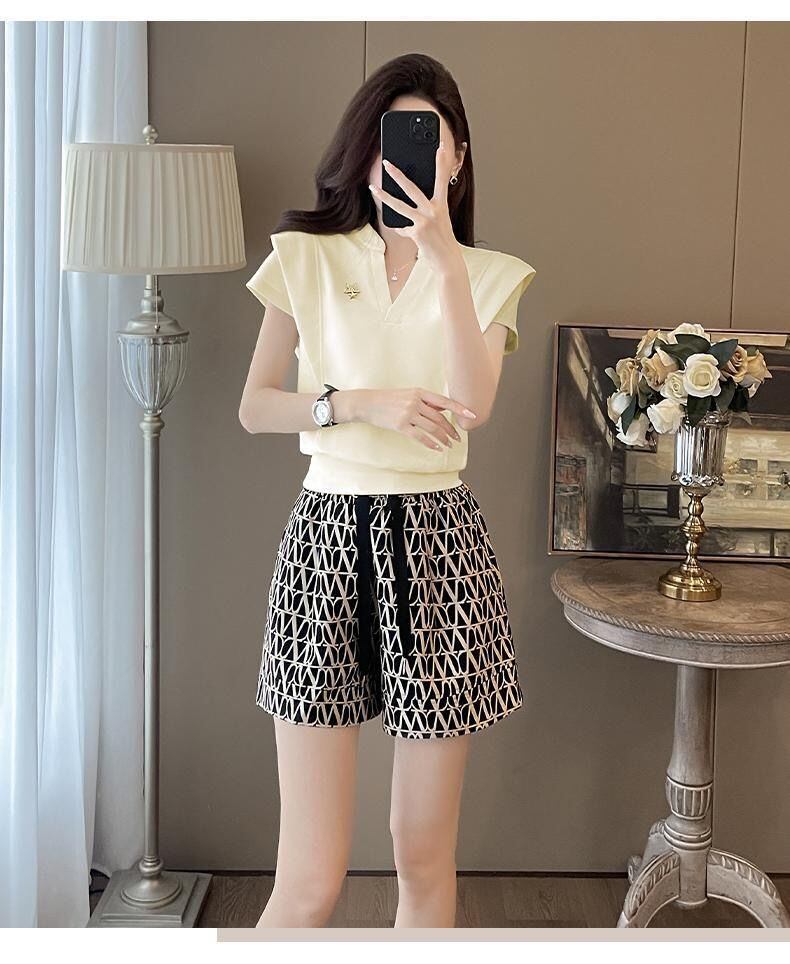好感度UP 上質 ラウンドネック 半袖Tシャツ ショートパンツ セットアップ <ins-8709>