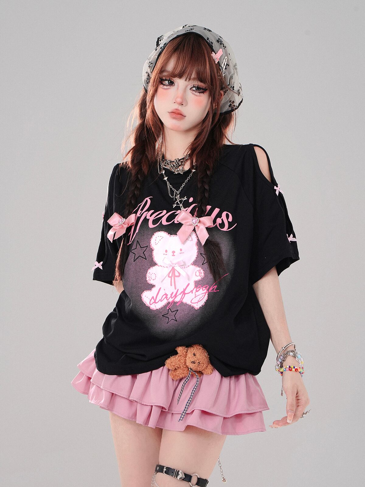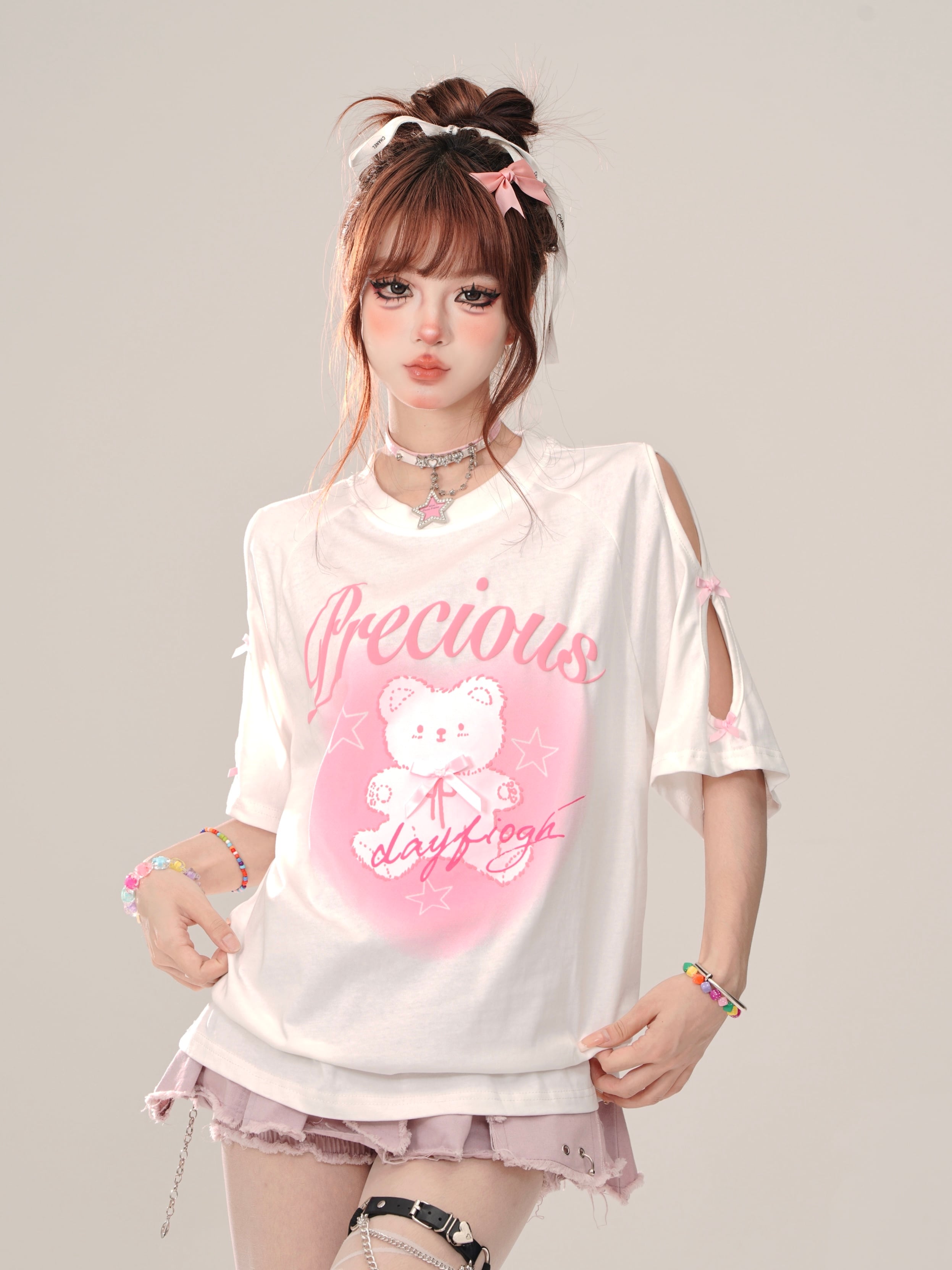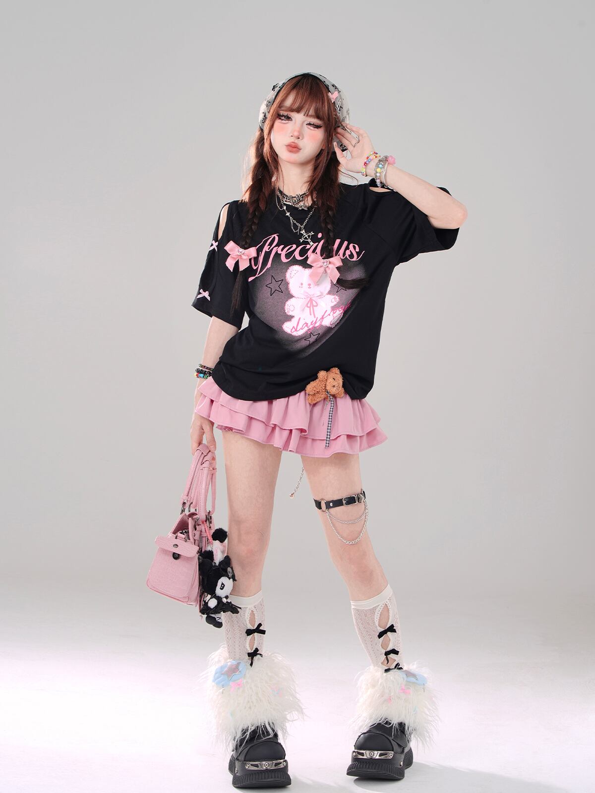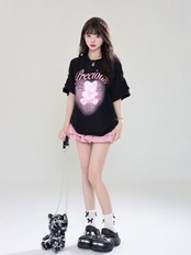 着回し力抜群 スウィートプリント レース 全2色 半袖Tシャツ <ins-8711>