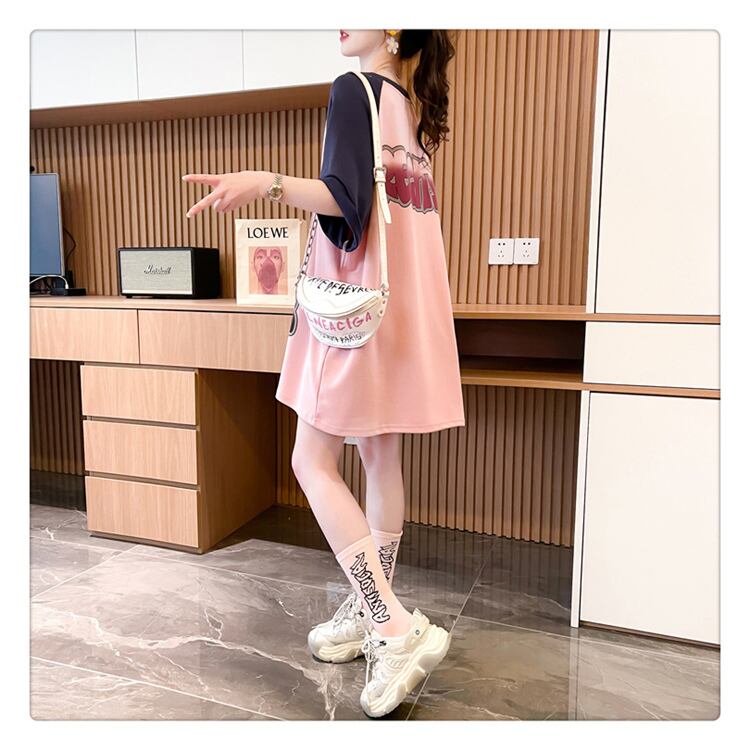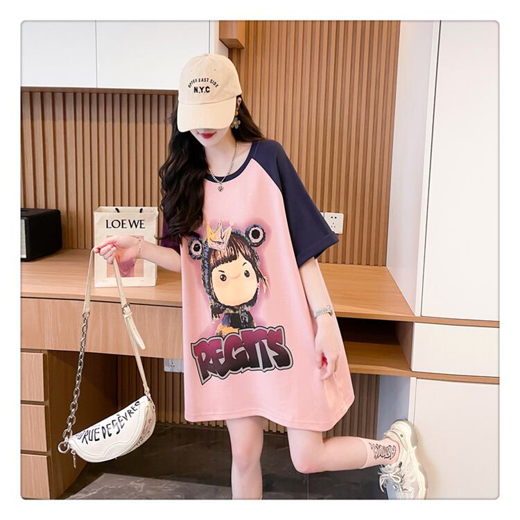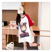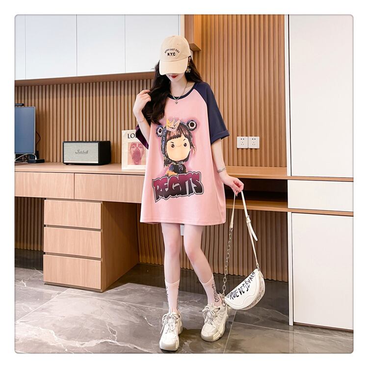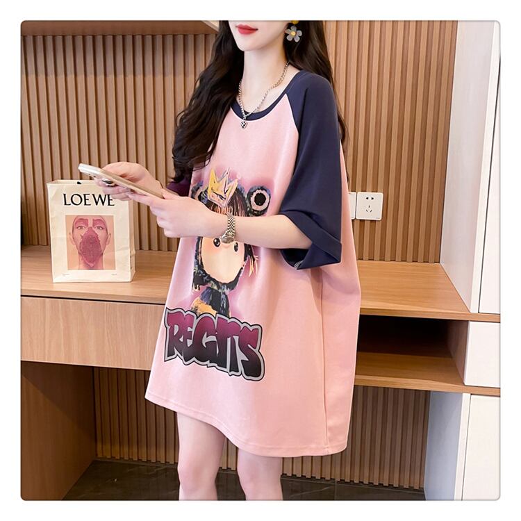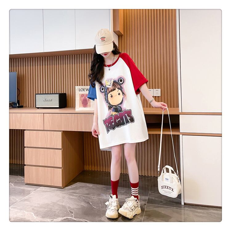 超人気 スウィート 切り替え プリント レース 全2色 半袖Tシャツ <ins-8716>