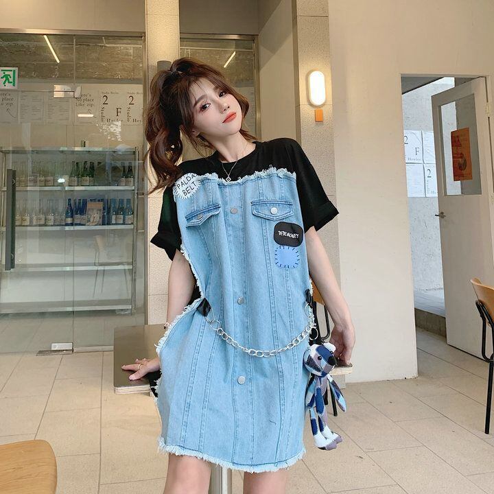 人気商品再入荷 絶対欲しい デニム 切り替え 全3色 ワンピース<ins-8725>