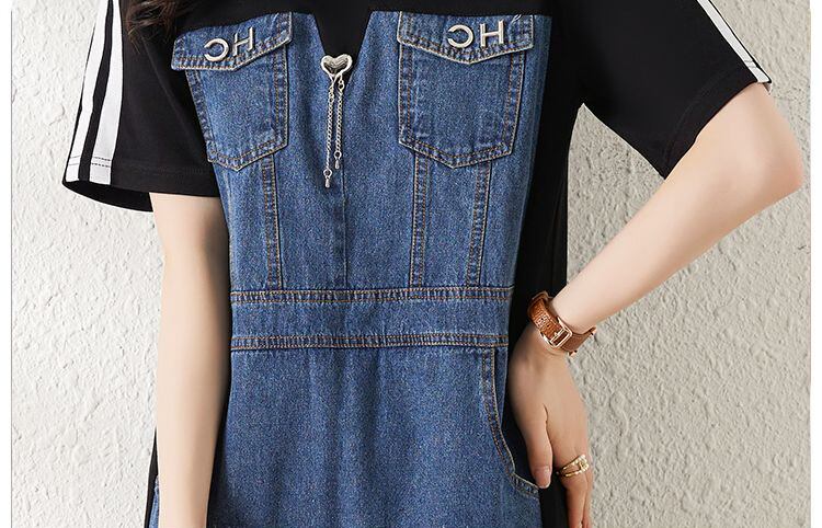 新商品 売り切れ必至 上質 切り替え デニム ワンピース<ins-8841>