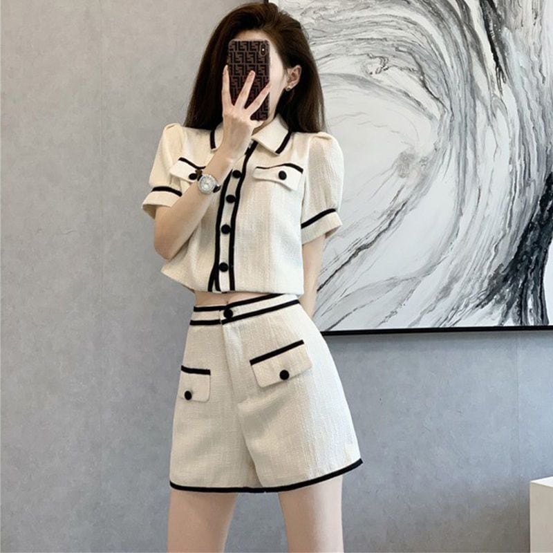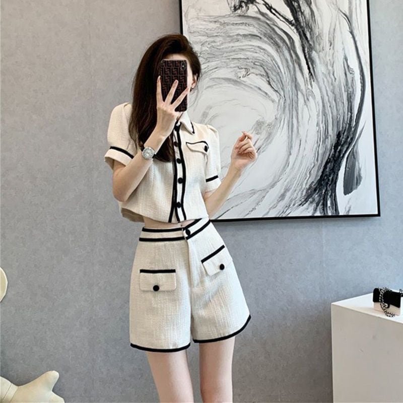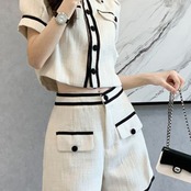 おすすめ 上品 ファッション カジュアル 切り替え 半袖 Tシャツ ショートパンツ セットアップ <ins-8858>