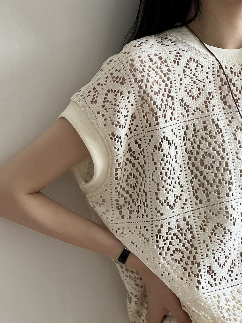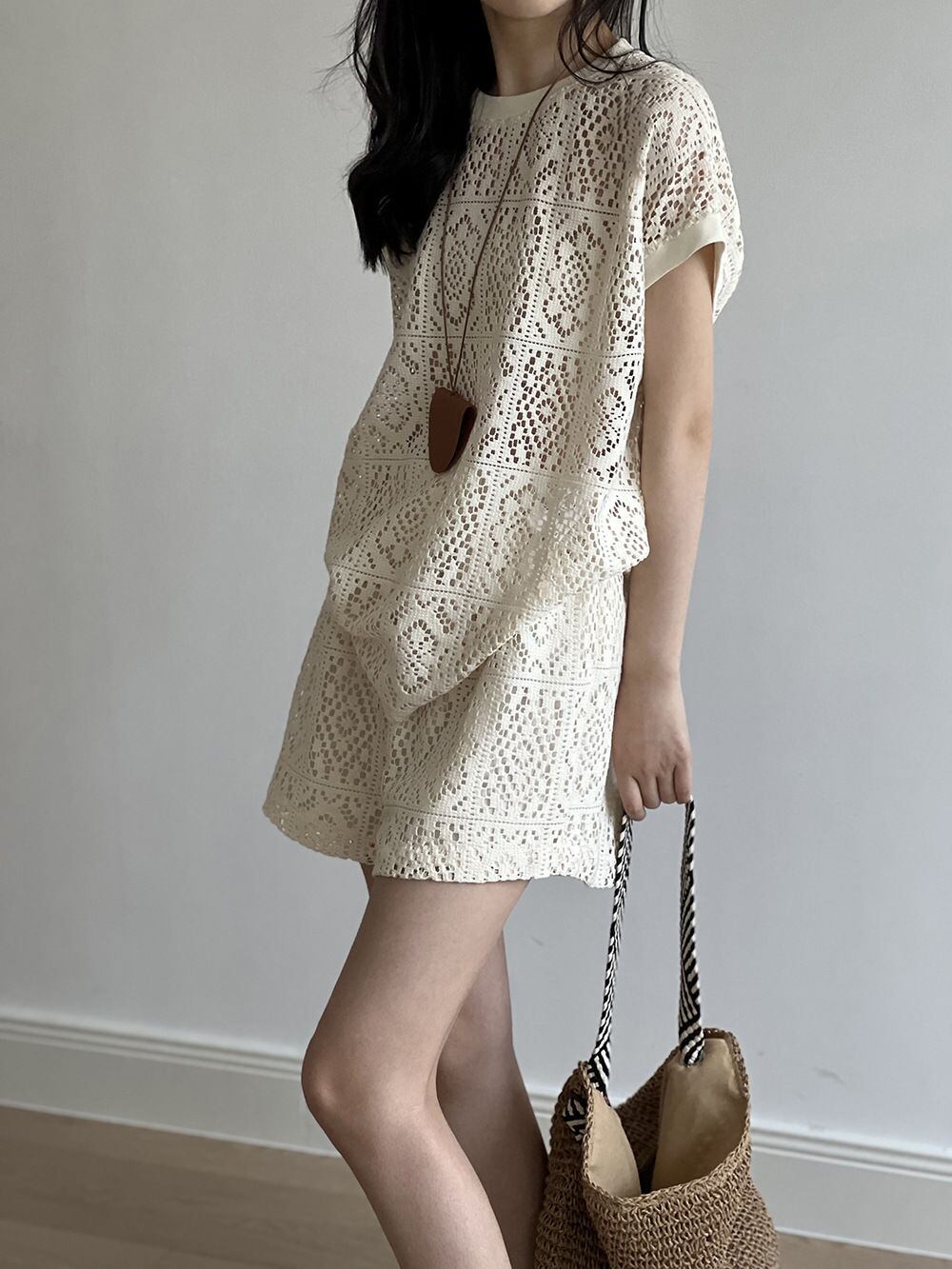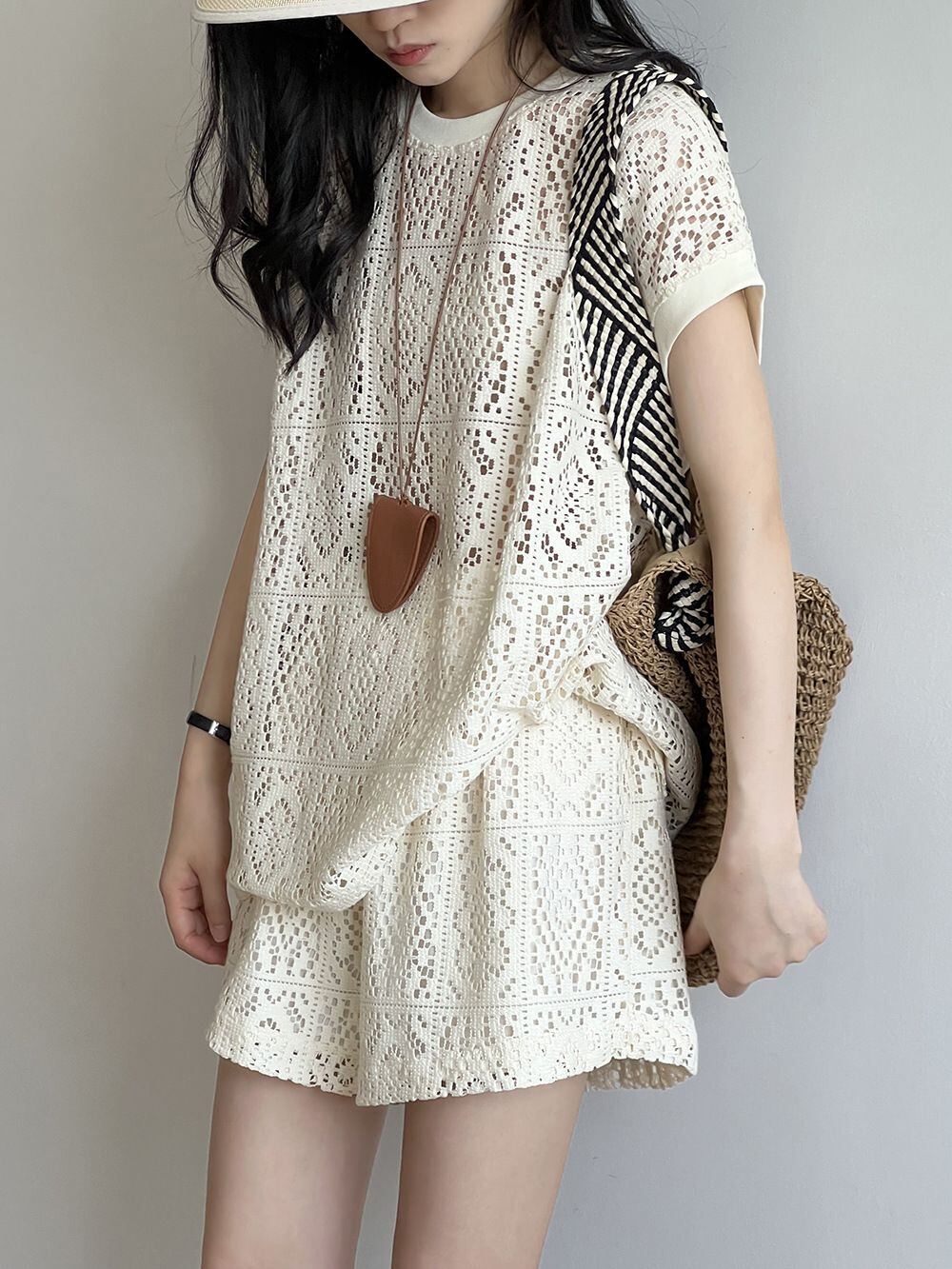 絶対欲しい カジュアル 透かし彫り 半袖 Tシャツ ショートパンツ セットアップ <ins-8870>