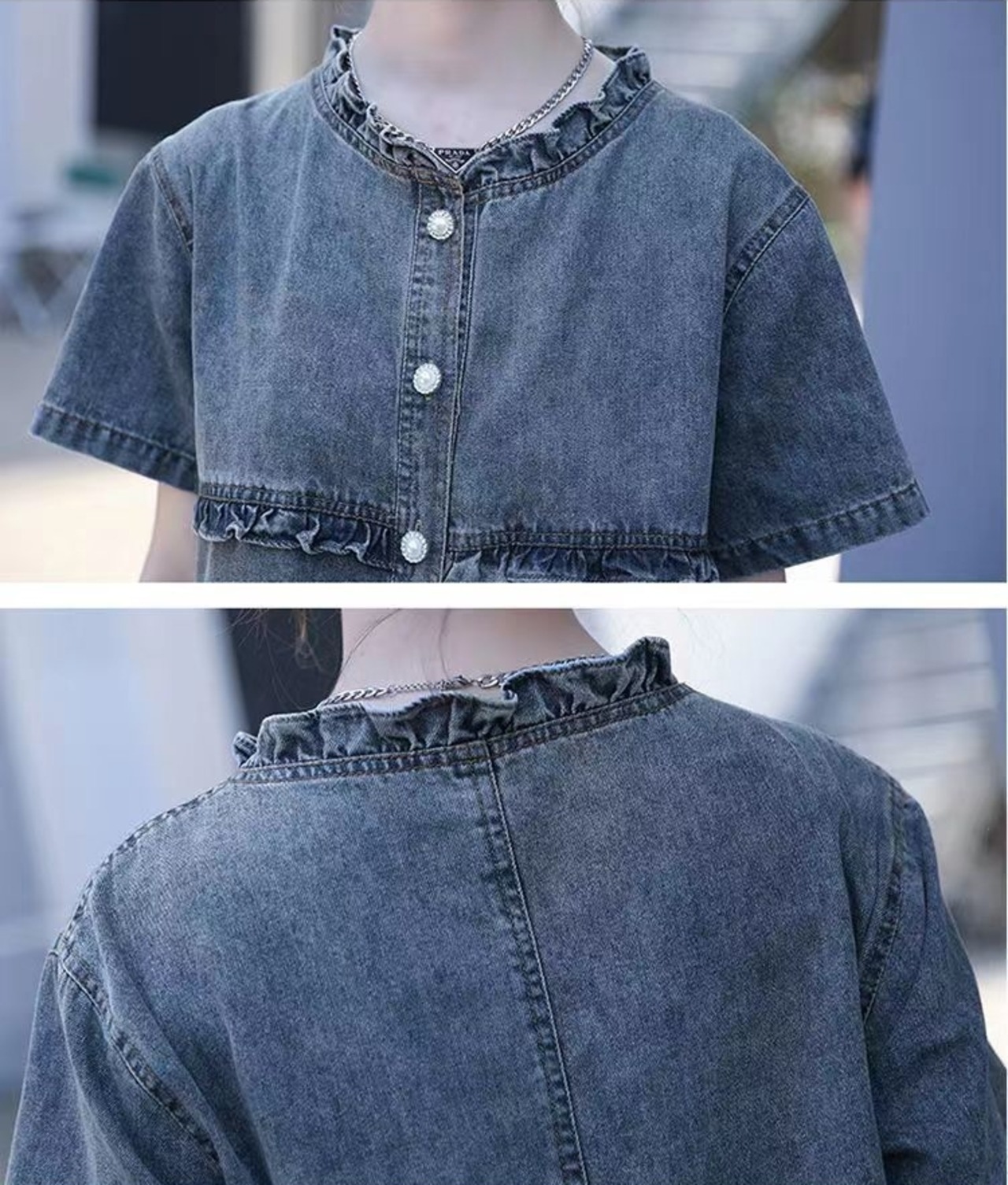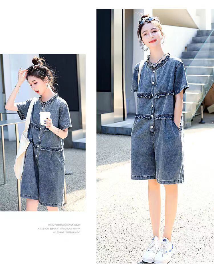 期間限定 今季マストバイ ファッション デニム ストリング半袖ジャンプスーツ <ins-8934>