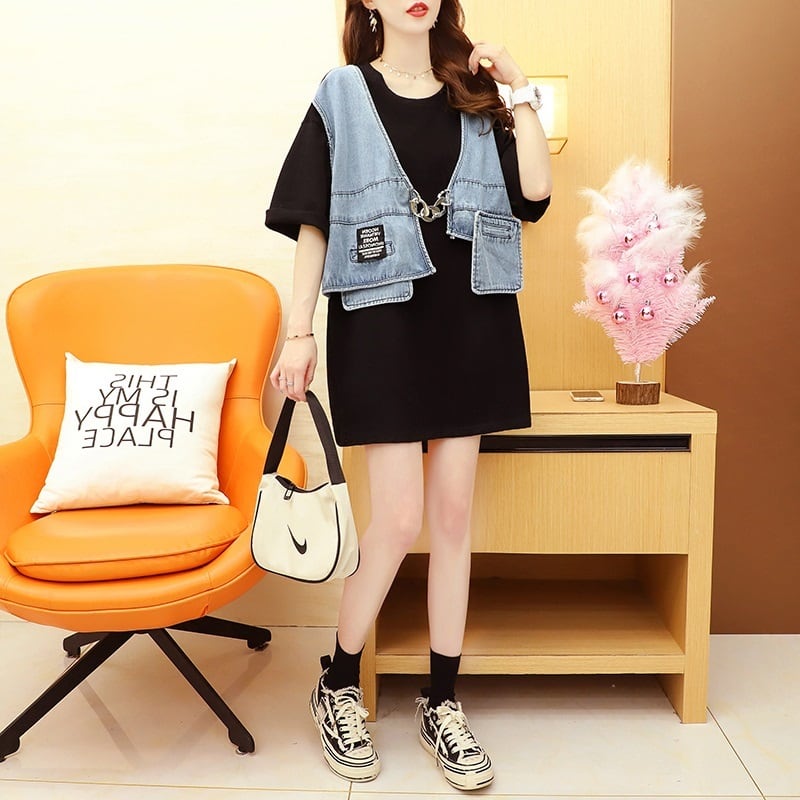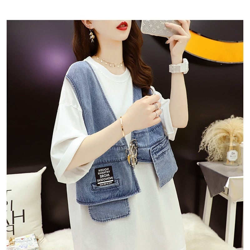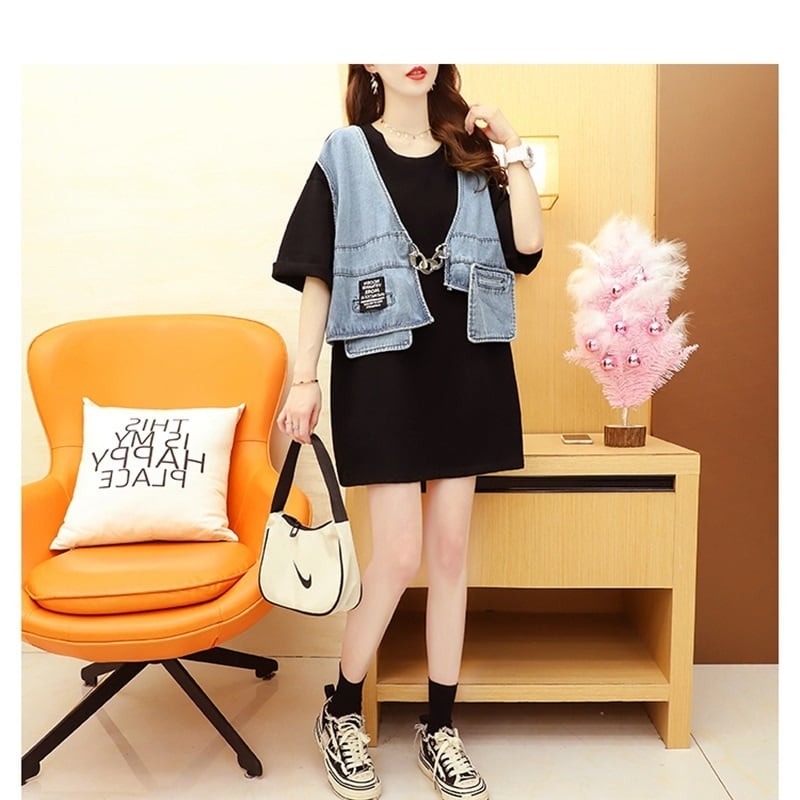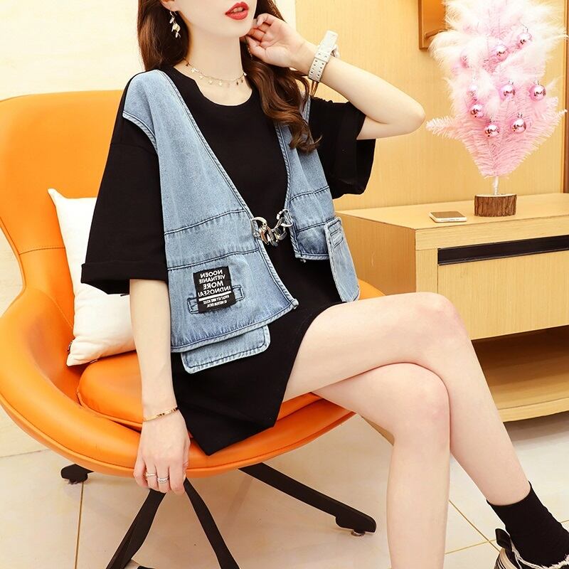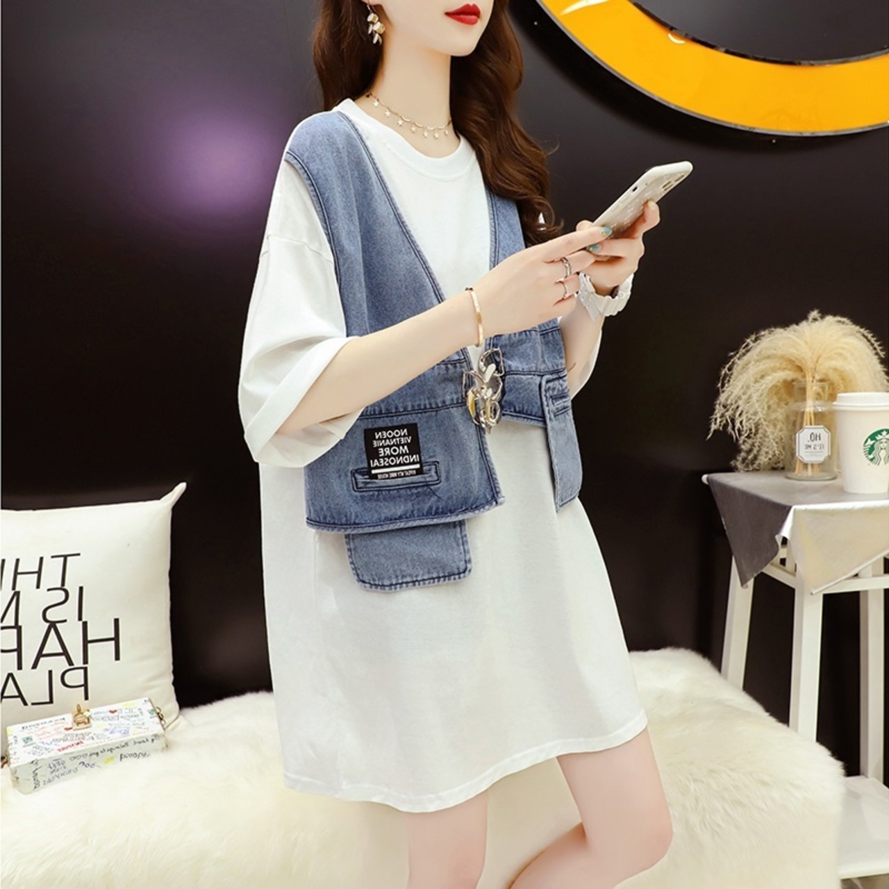 着回し力抜群 カジュアル レイヤード風 ゆったり 2色選択 半袖Tシャツ<ins-8958>
