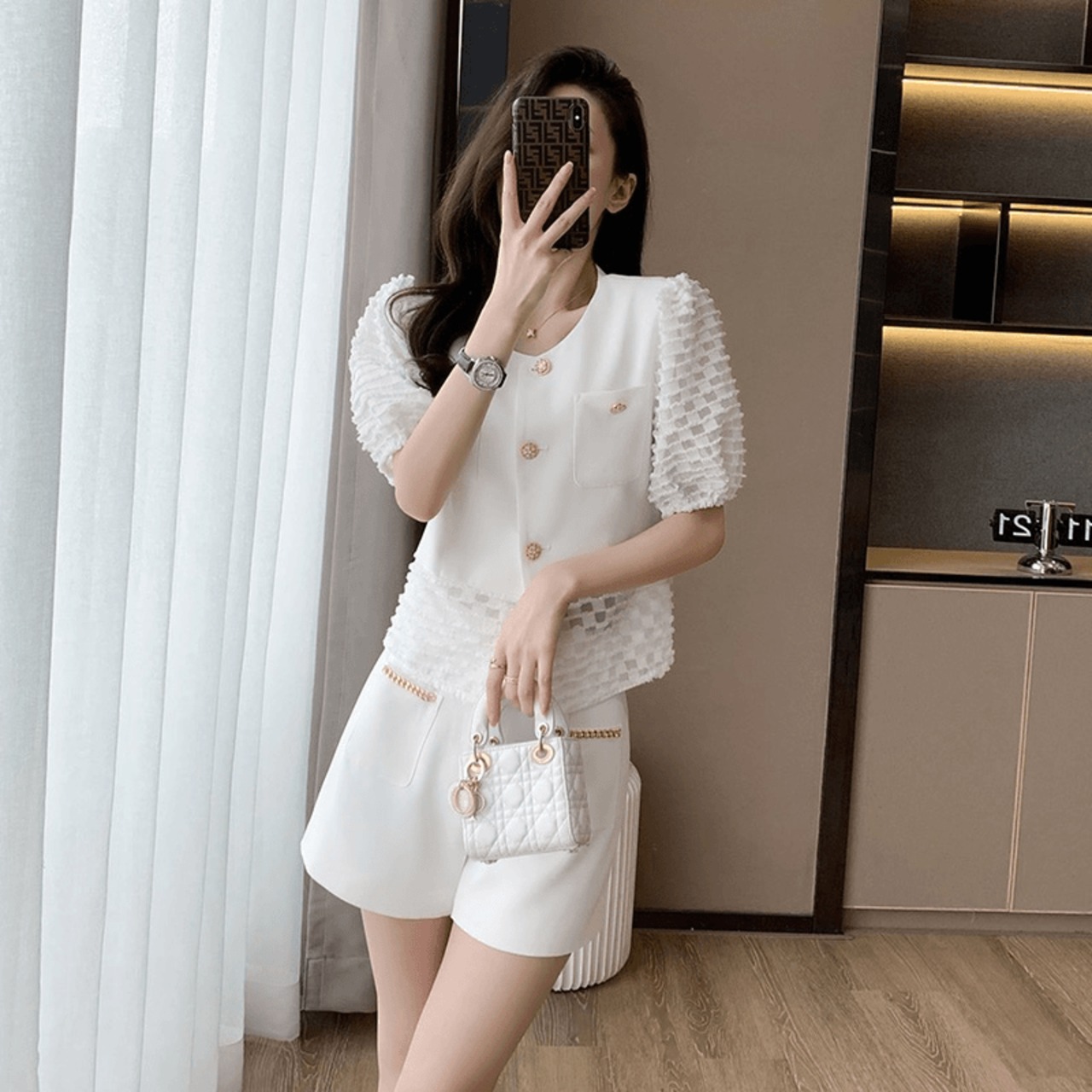 主役級の存在感!高級感溢れる 上品 エレガント シャツ+ショートパンツ セットアップ<ins-8999>
