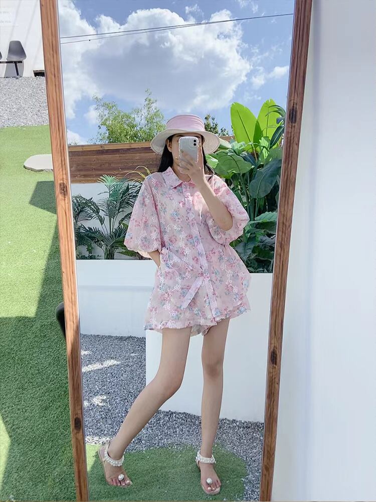 新商品 大人可愛い 花柄 シャツ+ショートパンツ セットアップ<ins-9001>