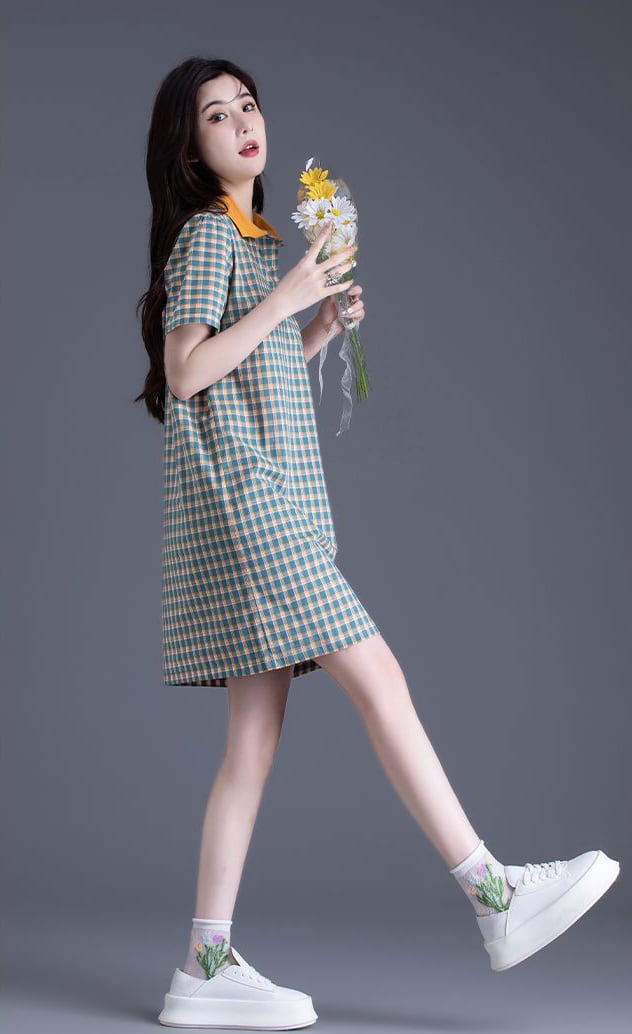 新商品 上質 簡潔 カジュアル チェック柄 ワンピース<ins-9006>