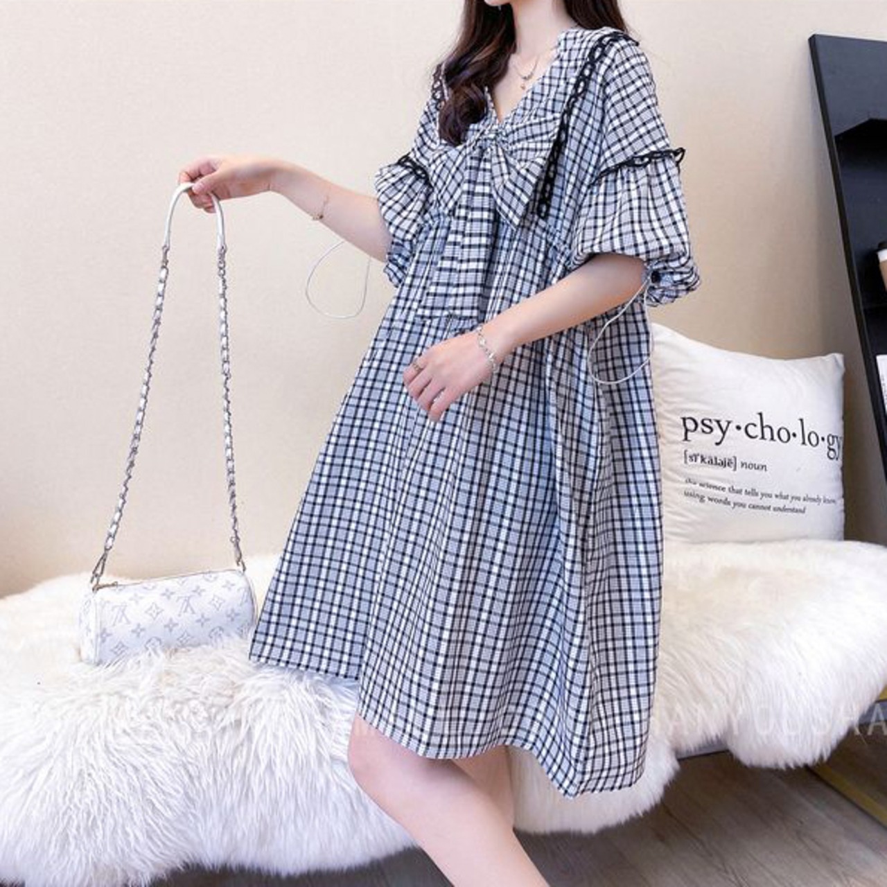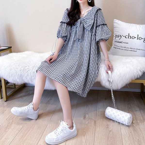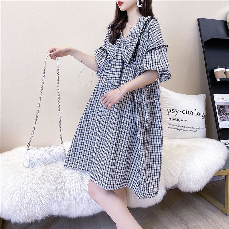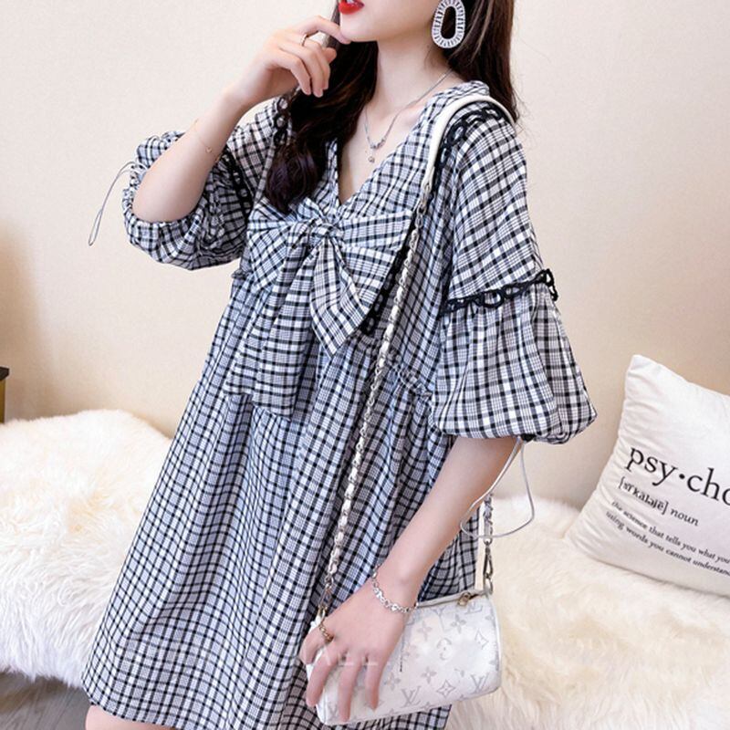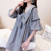 ベストセラーアイテム!絶対欲しい 形が綺麗 リボン チェック柄 ワンピース<ins-9067>
