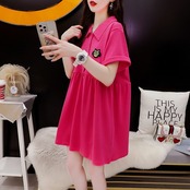 超人気 フランスファッションポロ襟ルーズ多用途 ゆったり 3色 半袖Tシャツ<ins-9090>
