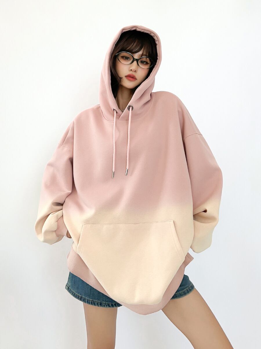 都市ファッショ オシャレ デザイン カジュアル グラデーション 4色選択 パーカー<ins-9222>