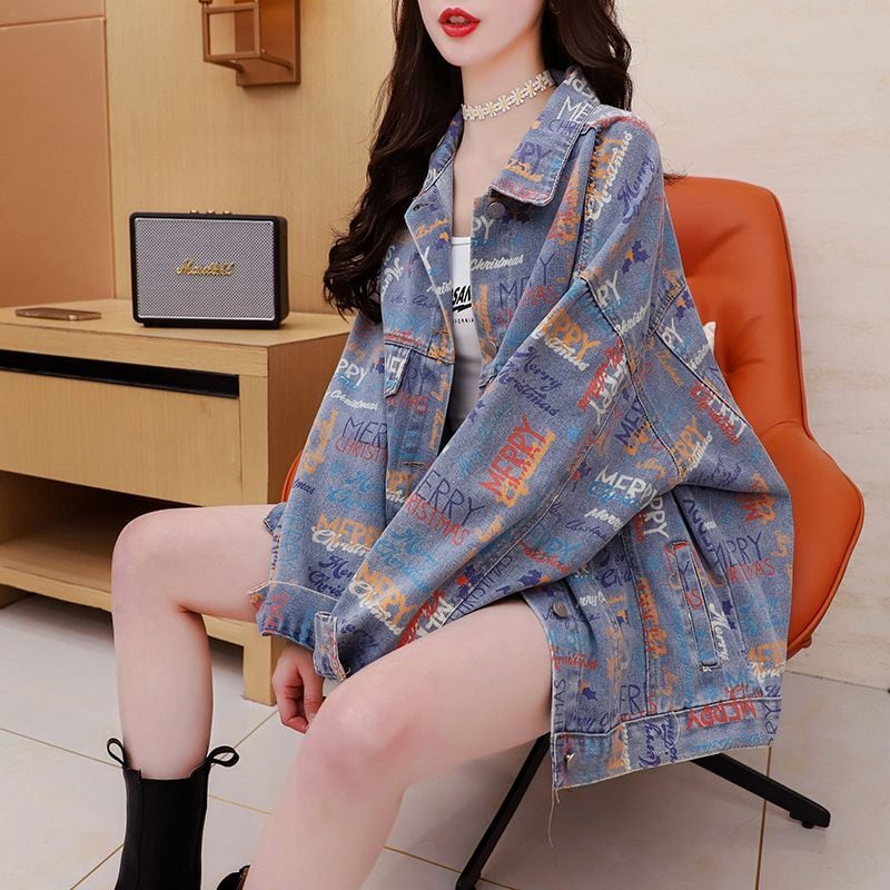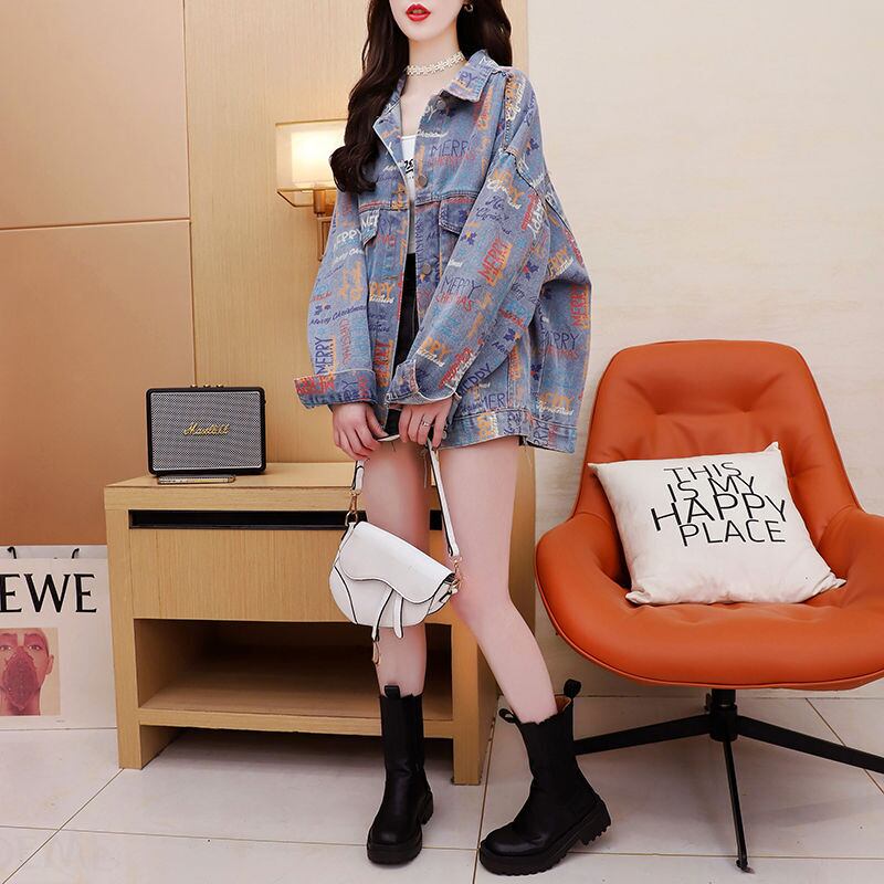 話題沸騰中 韓国風ファッション プリント デニムジャケットゆったりコート<ins-9239>