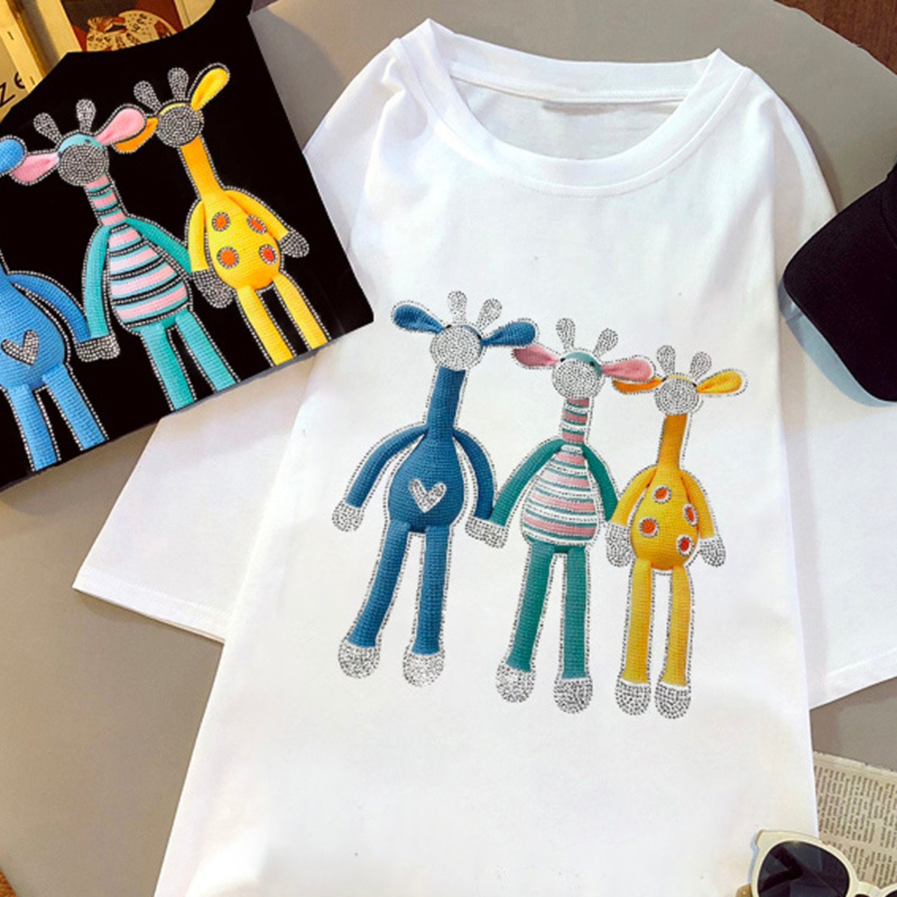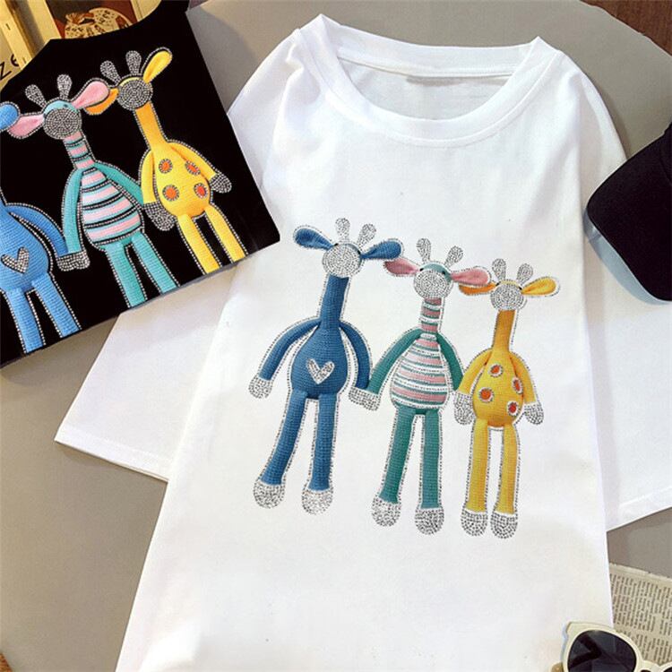 活躍する優秀アイテム 高見えデザイン ホットダイヤモンド 全2色 半袖Tシャツ<ins-9250>