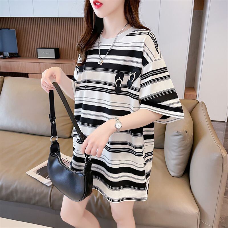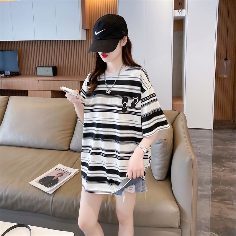 存在感抜群 トレンドアイテム ストライプ柄 カジュアル ゆったり 全2色 半袖Tシャツ<ins-9322>