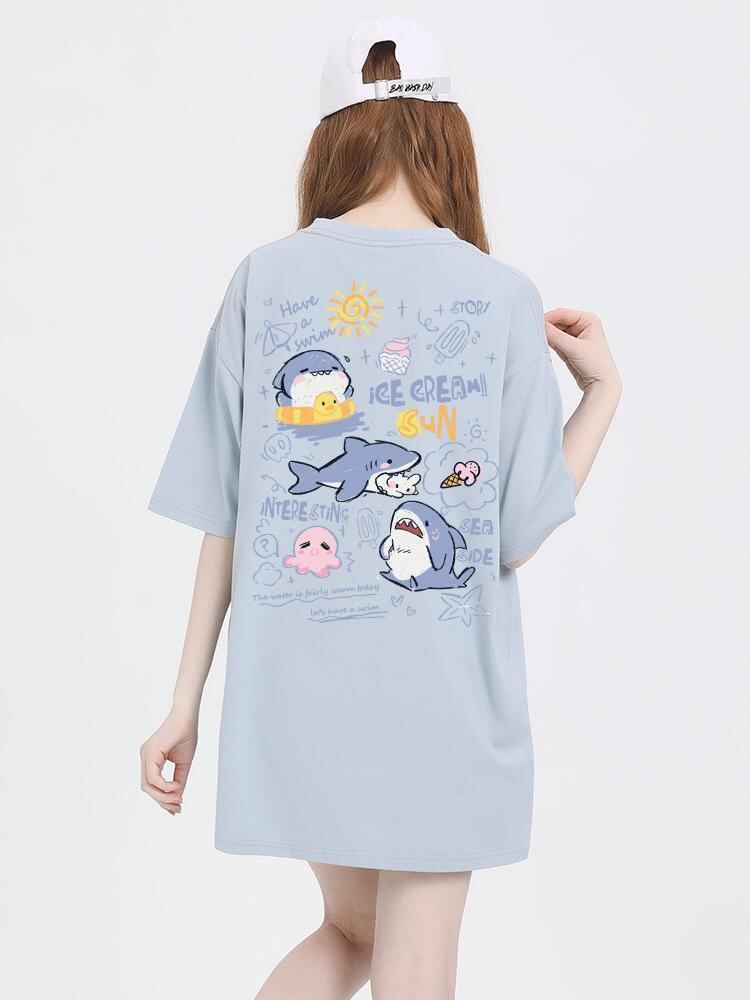 売り切れ必至 ポップなプリントが夏に映えるプリント 4色選択 半袖Tシャツ<ins-9327>