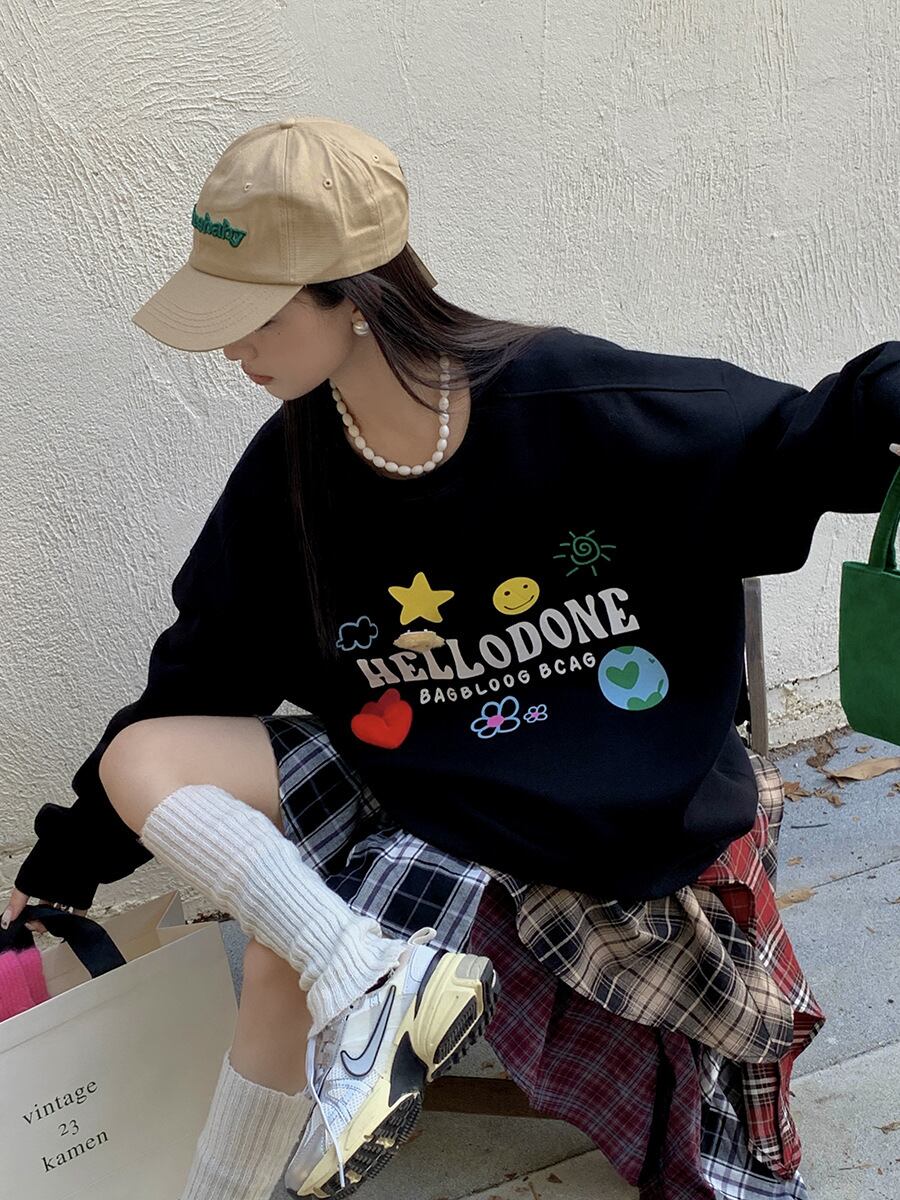 絶対欲しい シンプルだけど一癖あるコーデ プリント カジュアル 5色選択 パーカー<ins-9367>