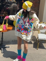 存在感抜群 トレンドアイテム 個性的なデザイン カジュアル プリント 4色選択 パーカー<ins-9375>